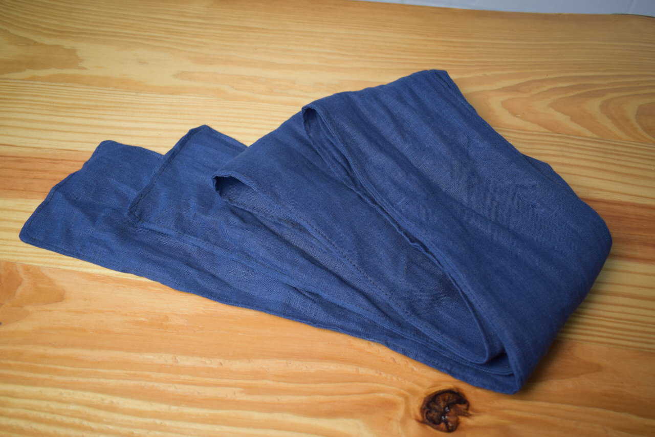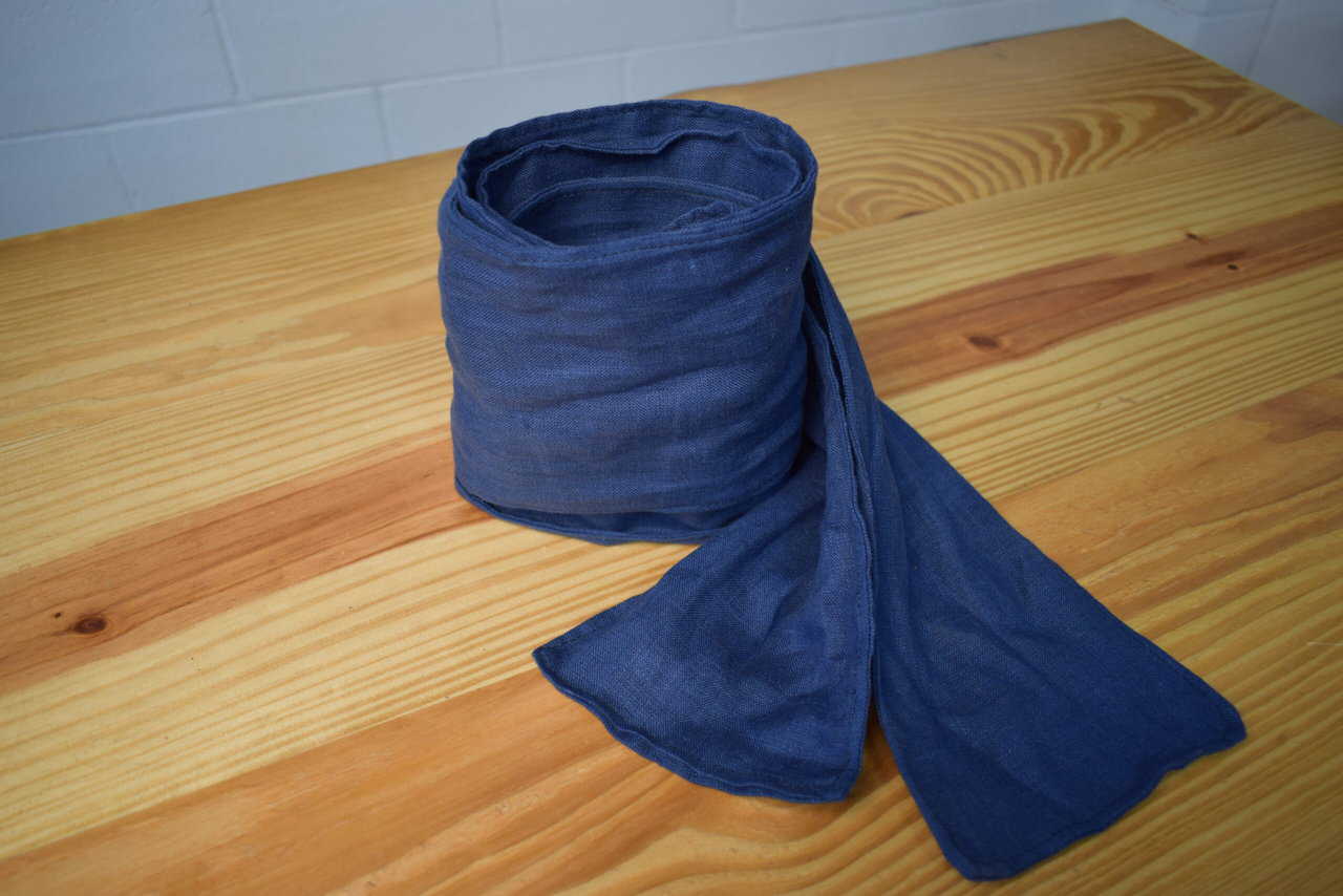 Each sash is 2 layers of medium weight linen, 6″ wide, 100″ long. They’re long enough to double wrap around most waists, or single wrapped with the remaining length hanging down awesomely.
