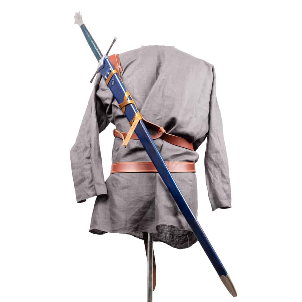 It is important to note that while back carry is a very convenient and comfortable way to carry a sword, longer swords may be difficult to draw or re-sheath without a bit of help. Shorter swords are a bit easier, but it is unlikely that your experience will match those you’ve seen in movies/video games.