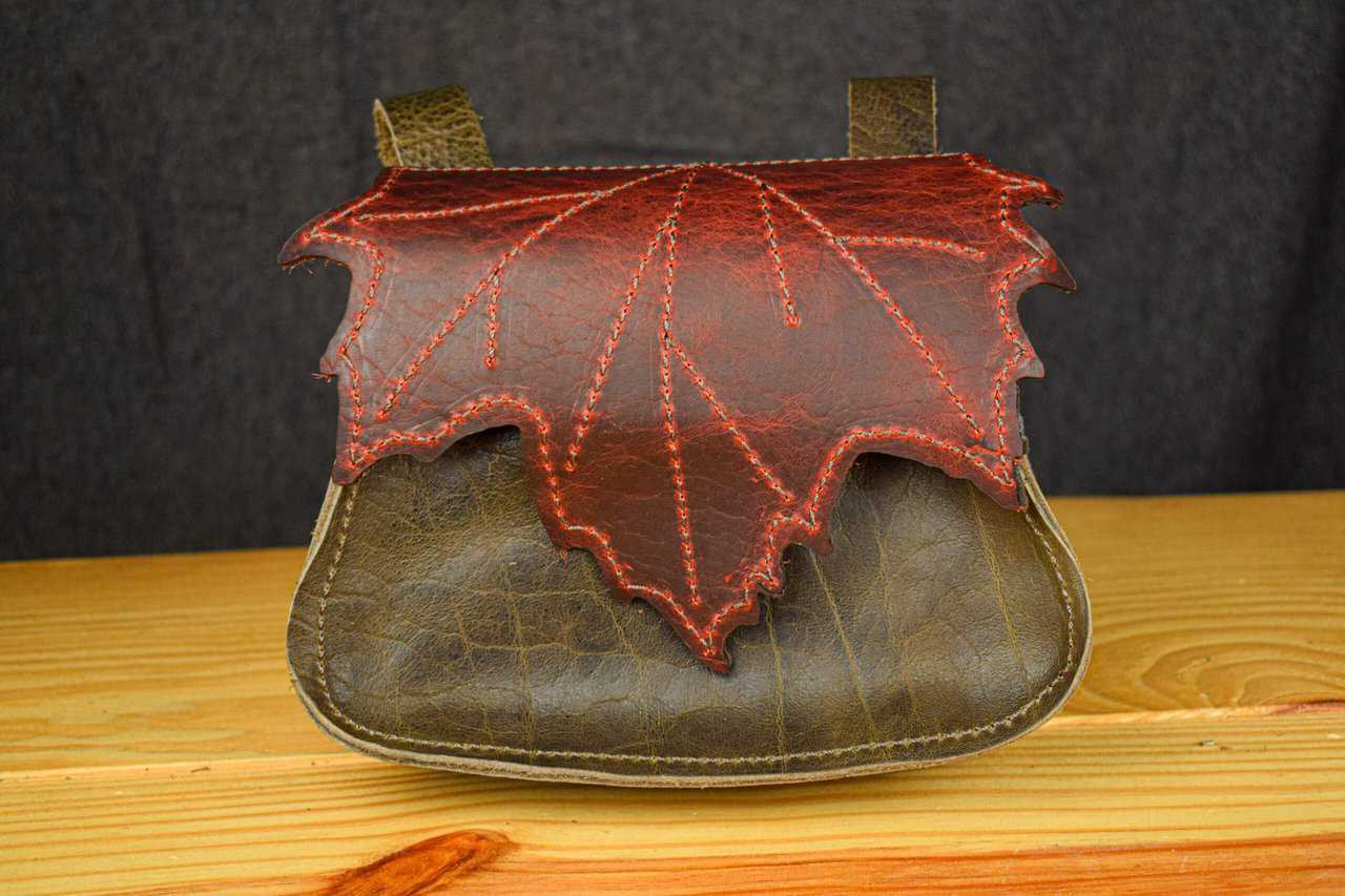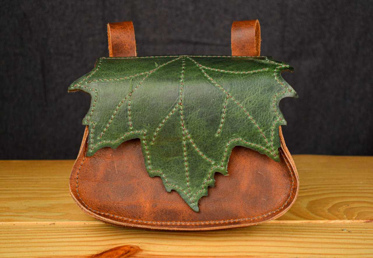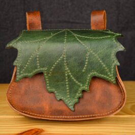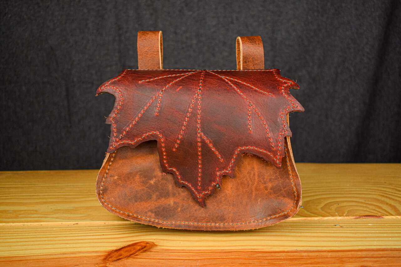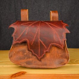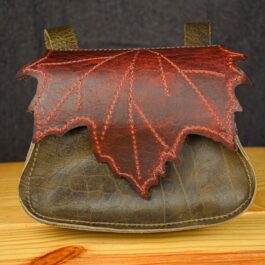 This is a handmade medieval style belt pouch, similar to our other leaf leaf belt pouch, but with a maple leaf shaped flap
