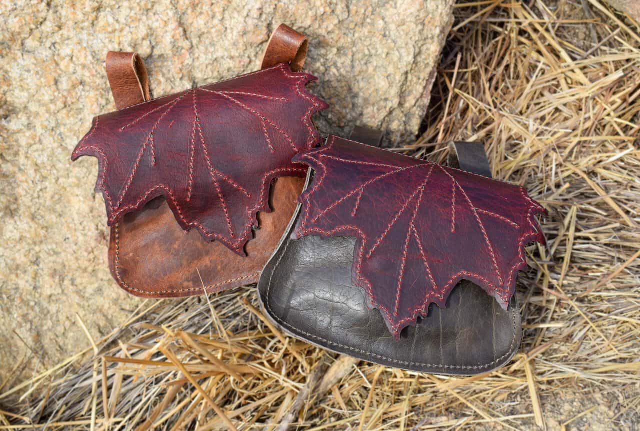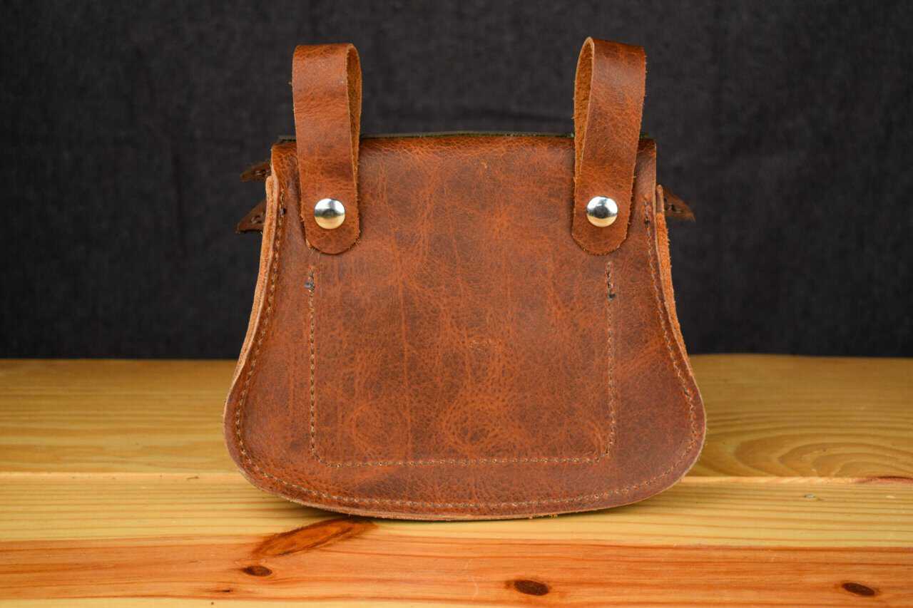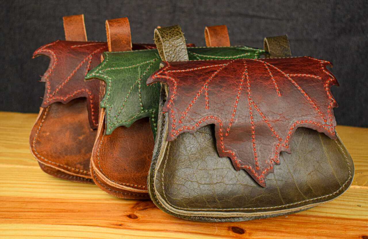 This is a handmade medieval style belt pouch, similar to our other leaf leaf belt pouch, but with a maple leaf shaped flap