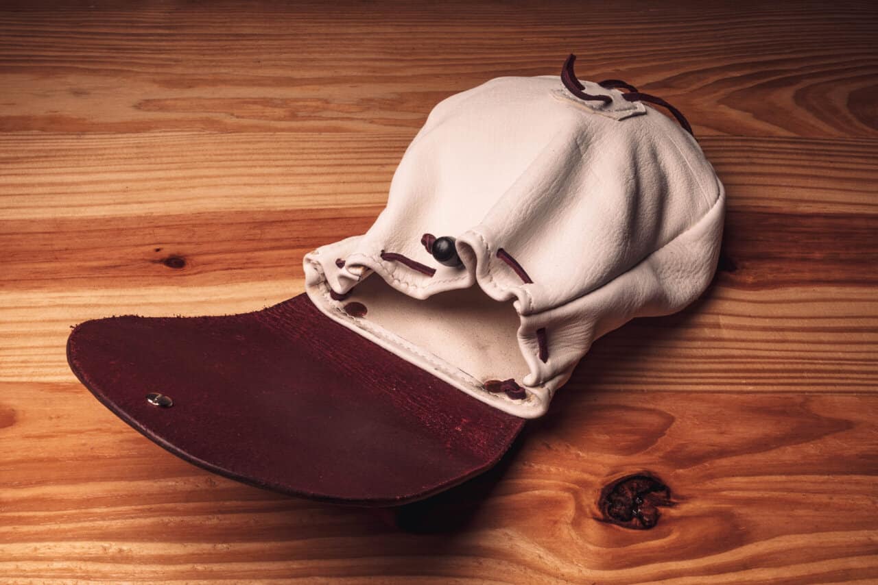 Each pouch is made with a red 8-10 ounce latigo flap with hand painted white spots, and a white 3-4 ounce deerskin pouch with drawstring closures.