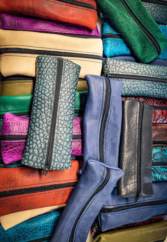 Each will have a black nylon coil zipper closure and can be made in an assortment of leathers and colors. They could be made out of our standard bison leather, some of our napa oil tan, or they could be made out of some embossed cowhide. The only guarantee is that they’ll be cool.