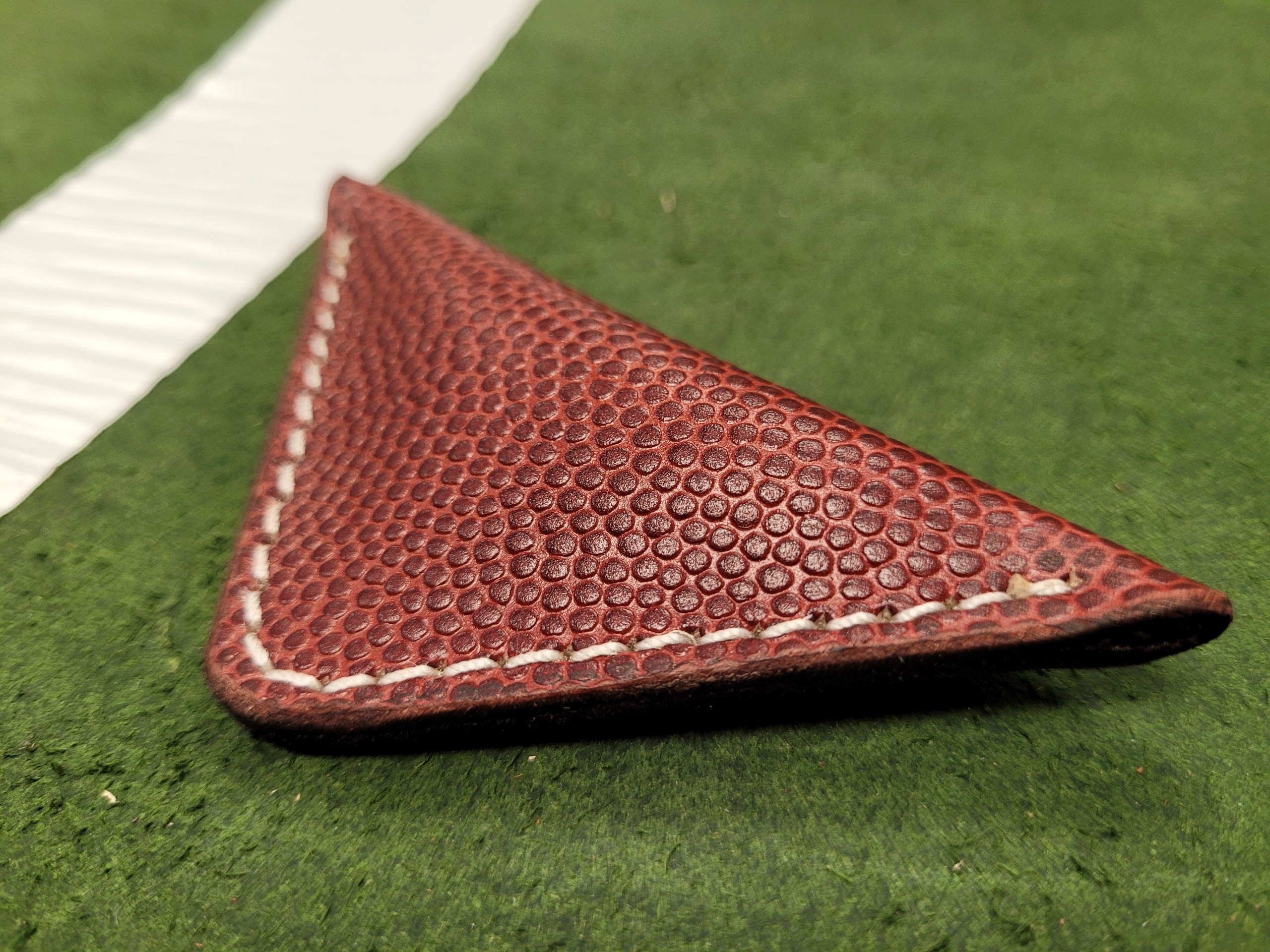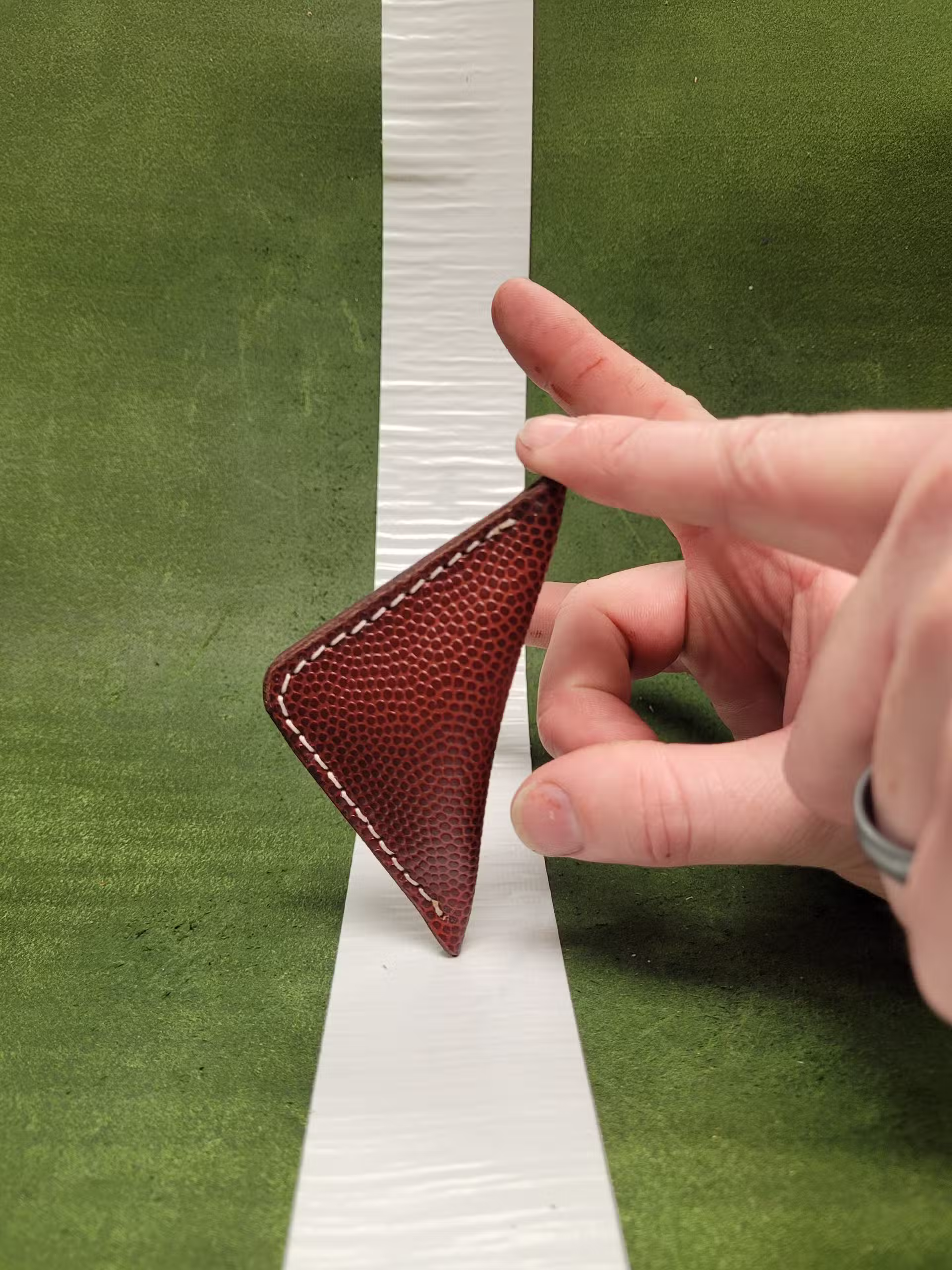 Each finger football is made out of the official NFL football leather made by the famous Horween Leather company. Each one is stuffed with lambswool and stitched in your choice of two thread colors