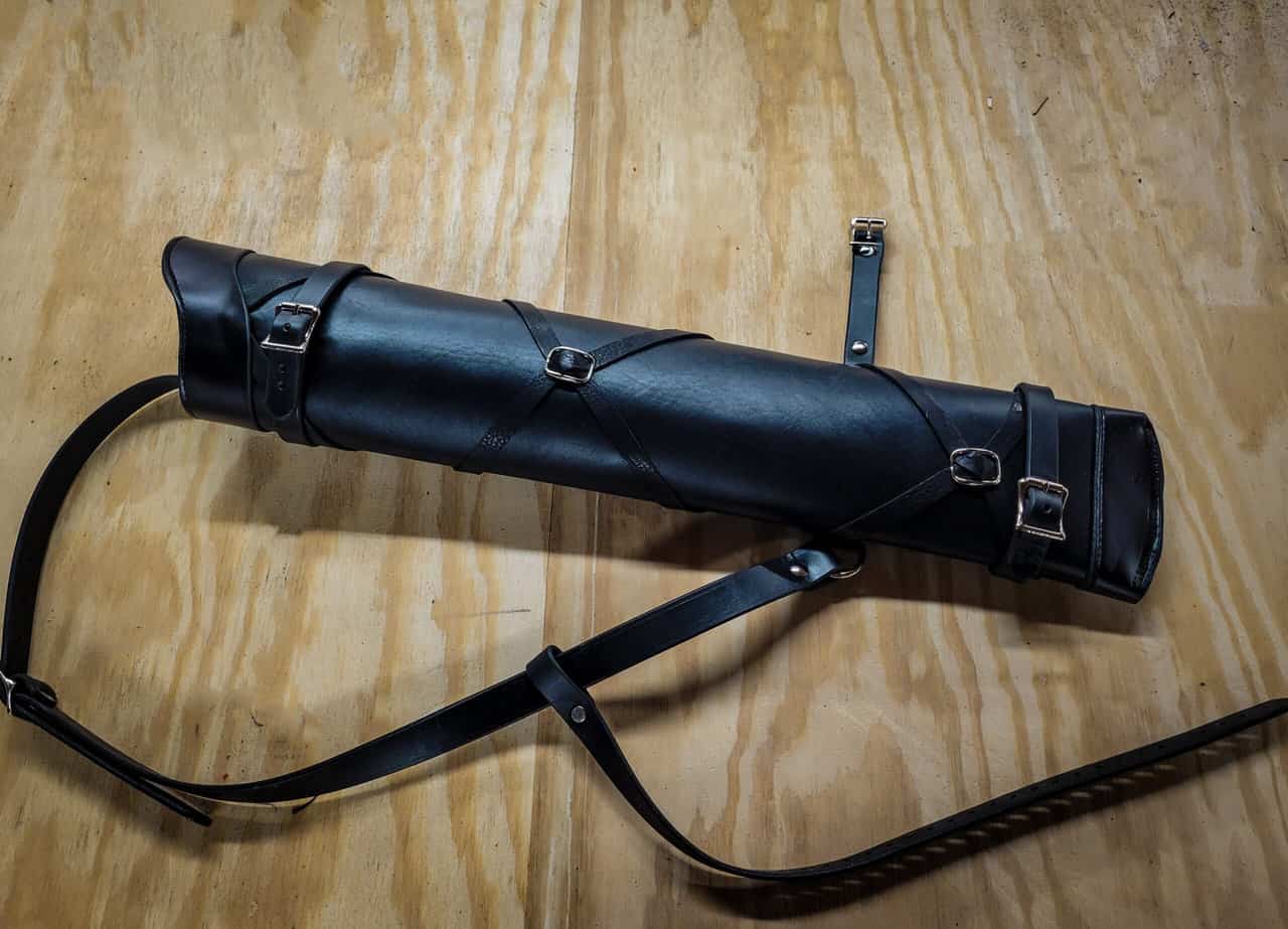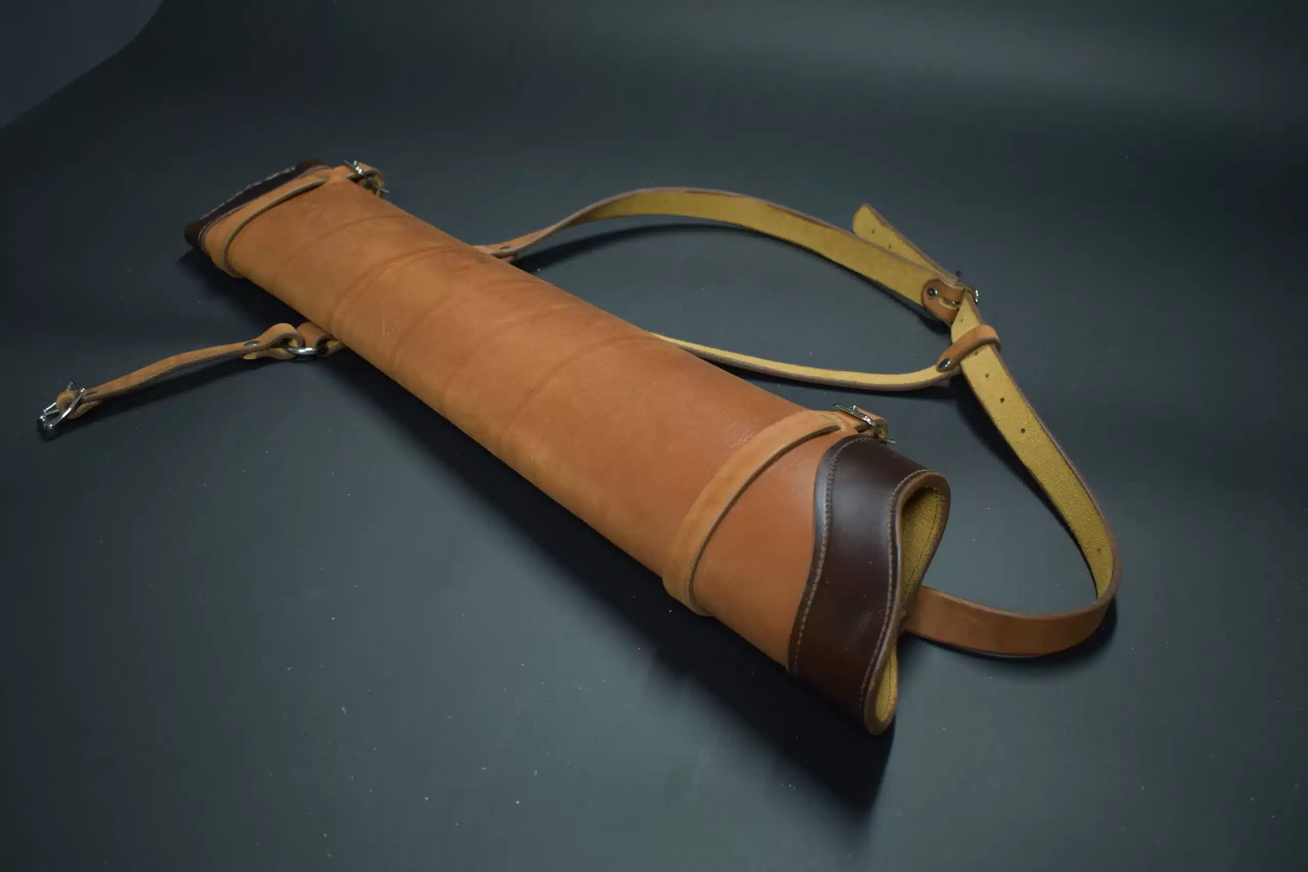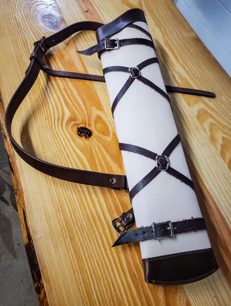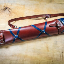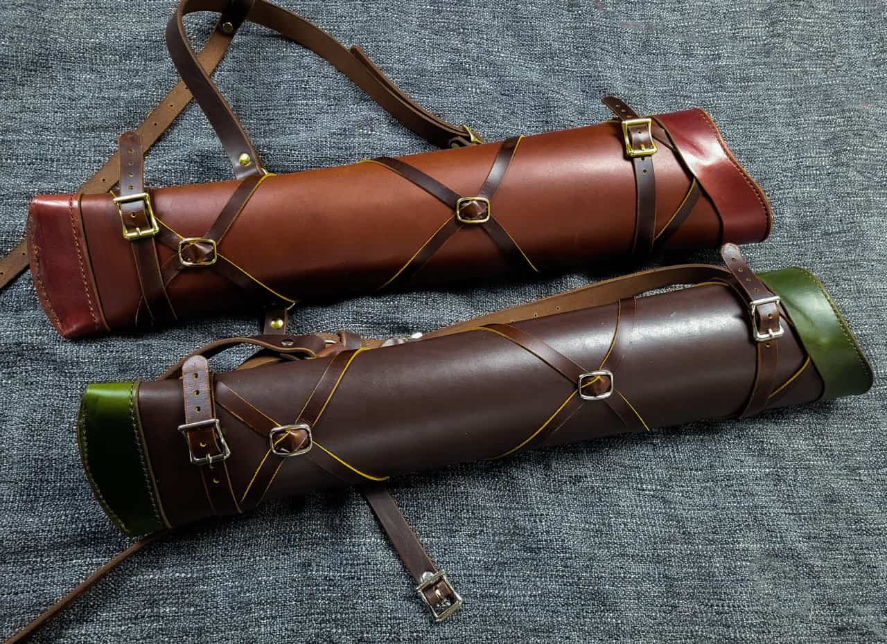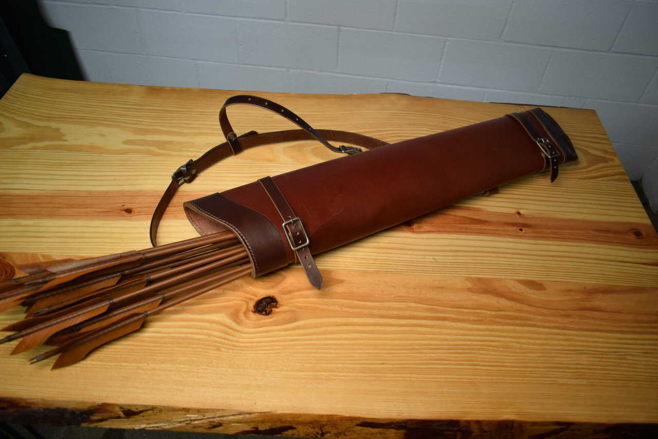 Each quiver is made out of 8-10 ounce latigo cowhide, with a 5-6 ounce napa oiltan overlay on the top and bottom.