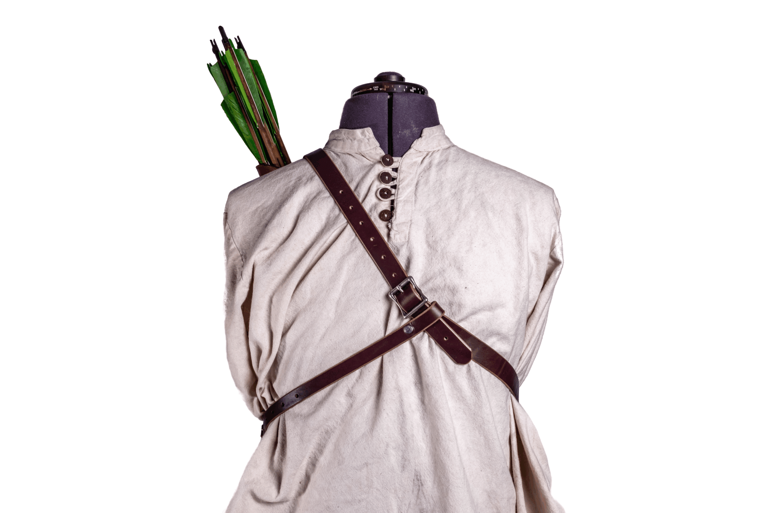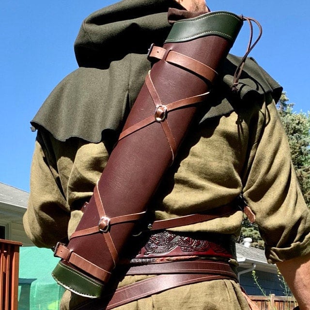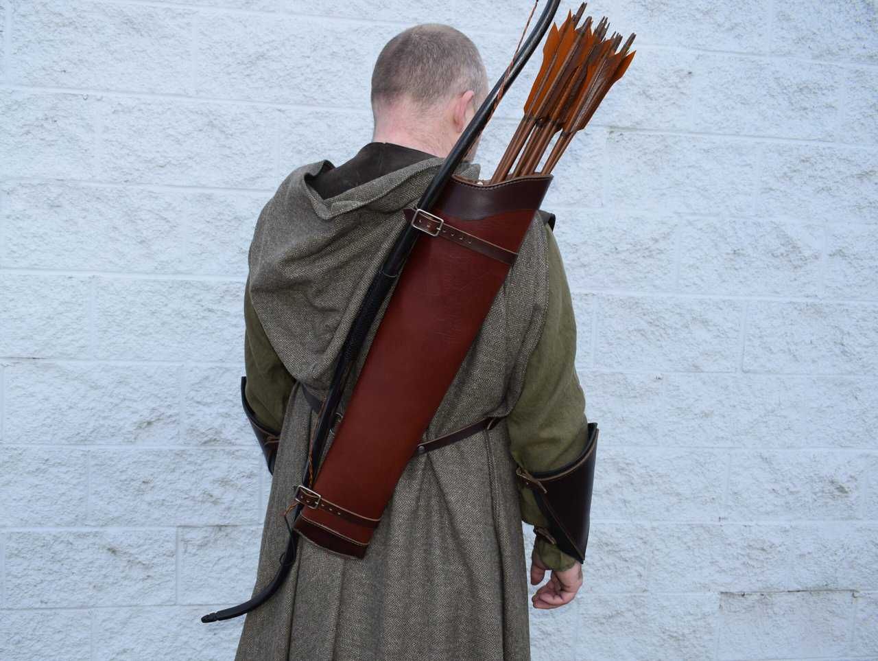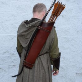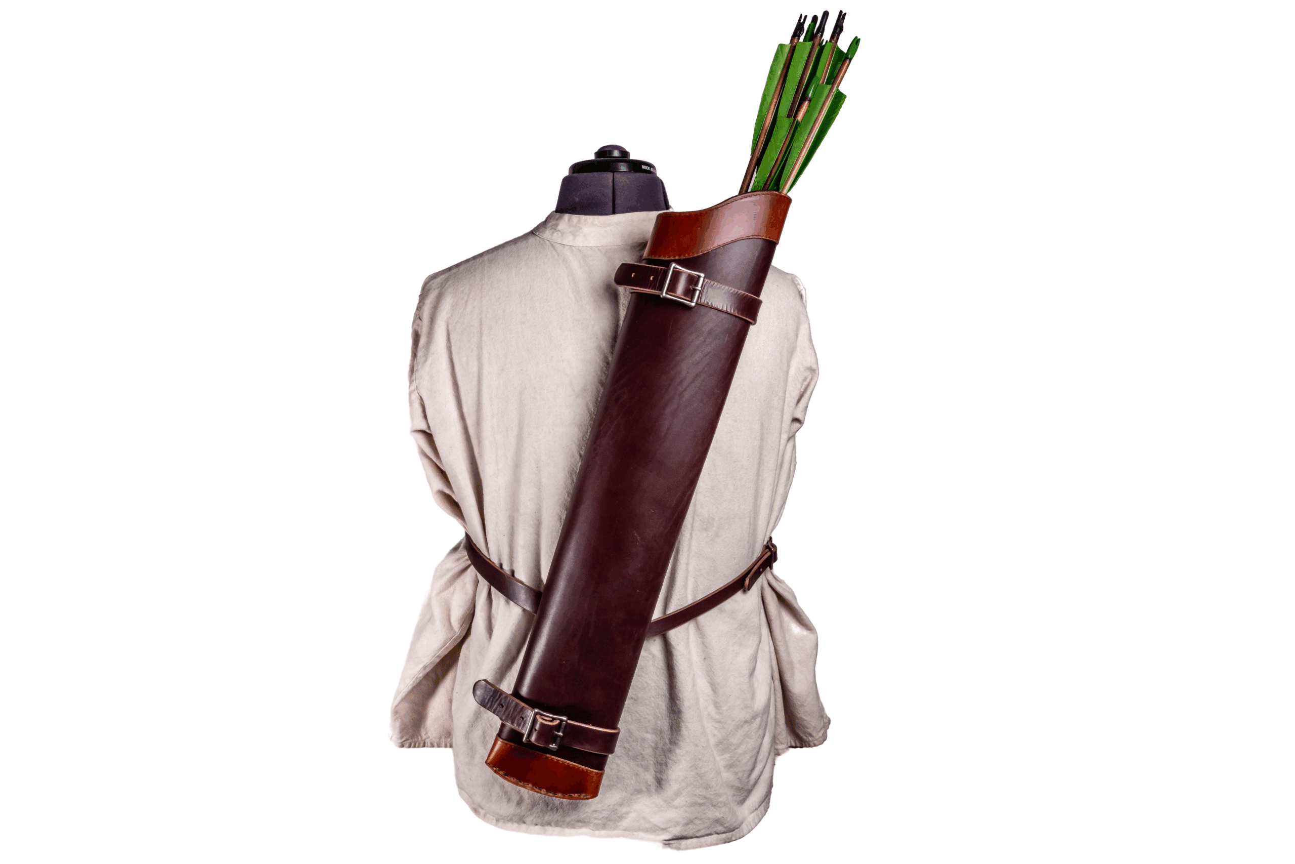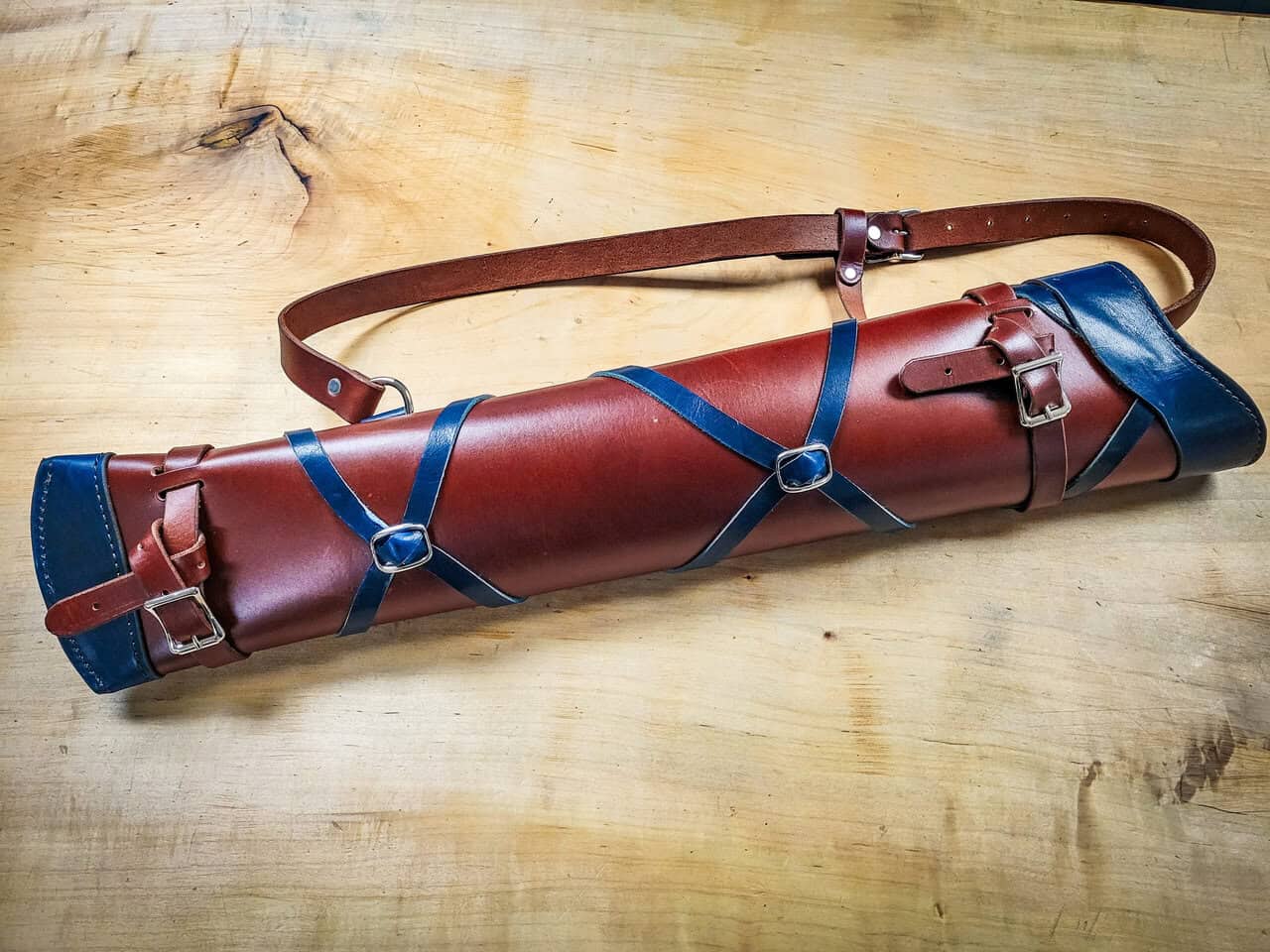 Each quiver is made out of 8-10 ounce latigo cowhide, with a 5-6 ounce napa oiltan overlay on the top and bottom.