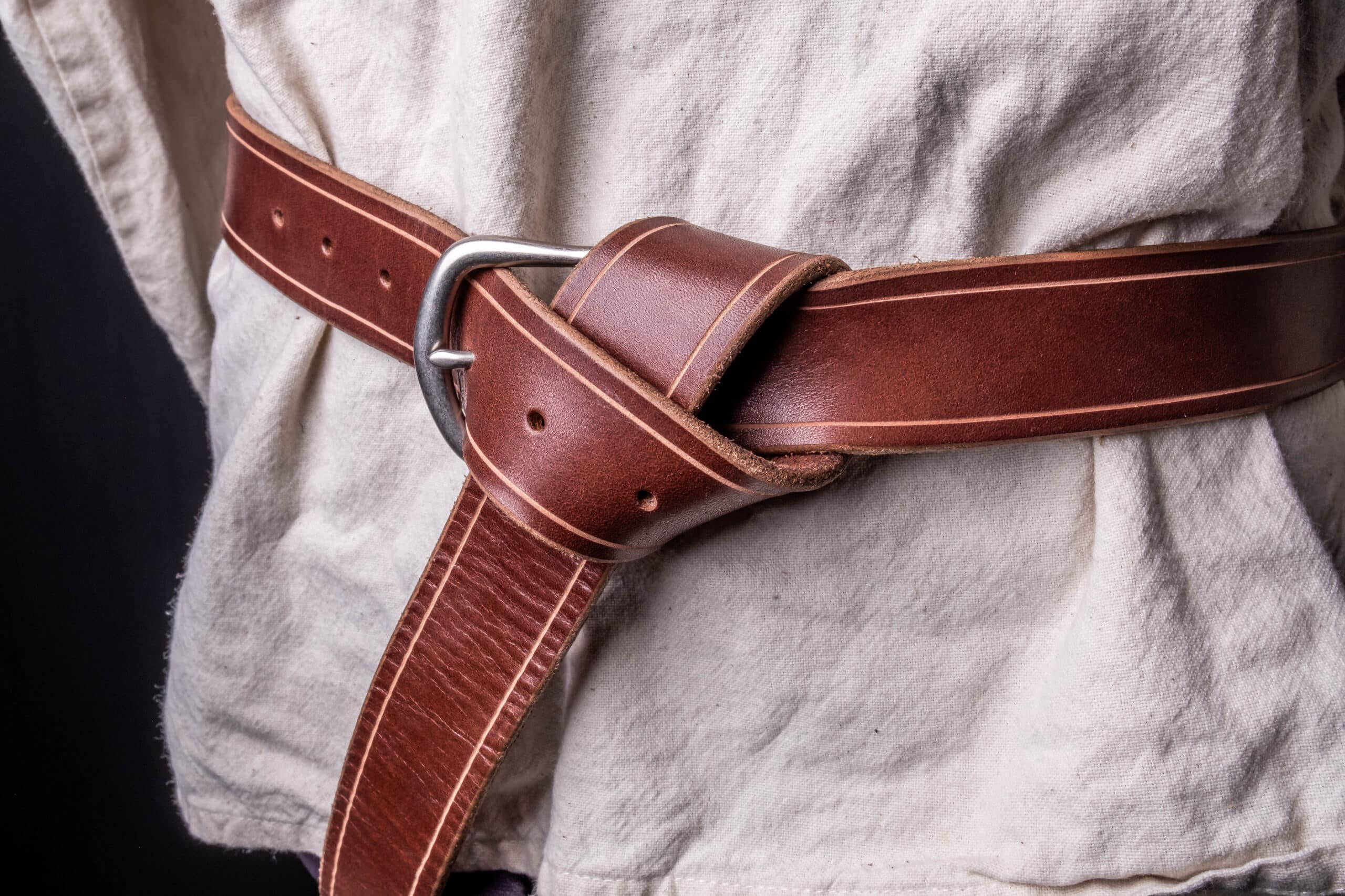 The belt includes an extra 20″ at the end so that you can tie it in a knot, the way real medieval warriors undoubtedly did. If you’d like yours to be shorter or longer, let me know before ordering.