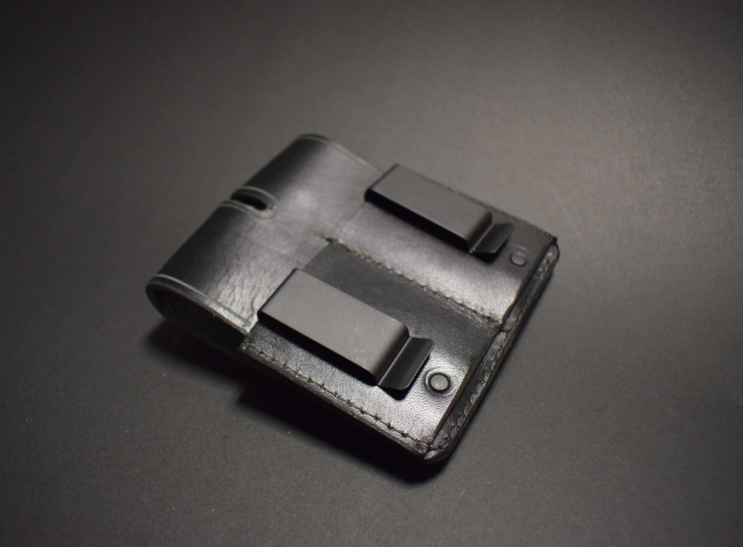 The pouch can be attached to your belt via 2 heavy duty steel belt clips, or by two leather belt loops.