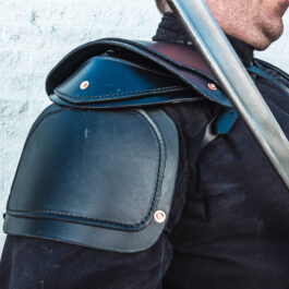 This listing is for a pair of leather Shoulder (Spaulder) armor. These are similar to style 2, with a more rounded top section. They do not offer as much coverage as the style 1 shoulder armor, but have more points of articulation, so allow a greater range of movement.