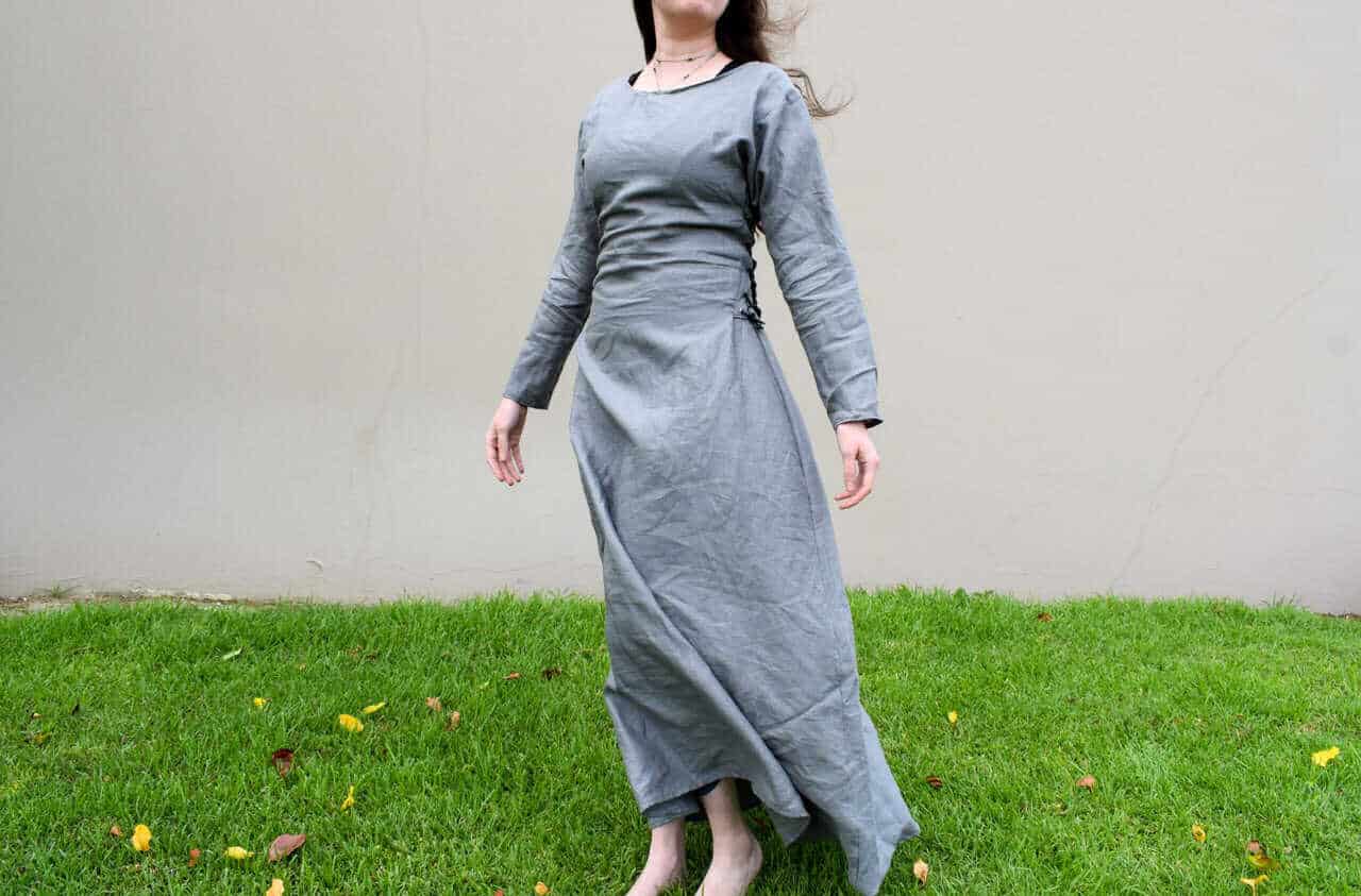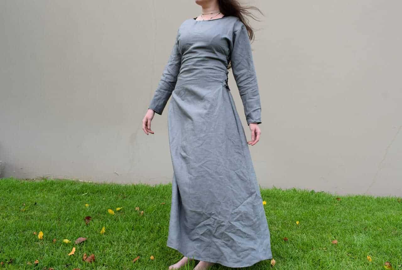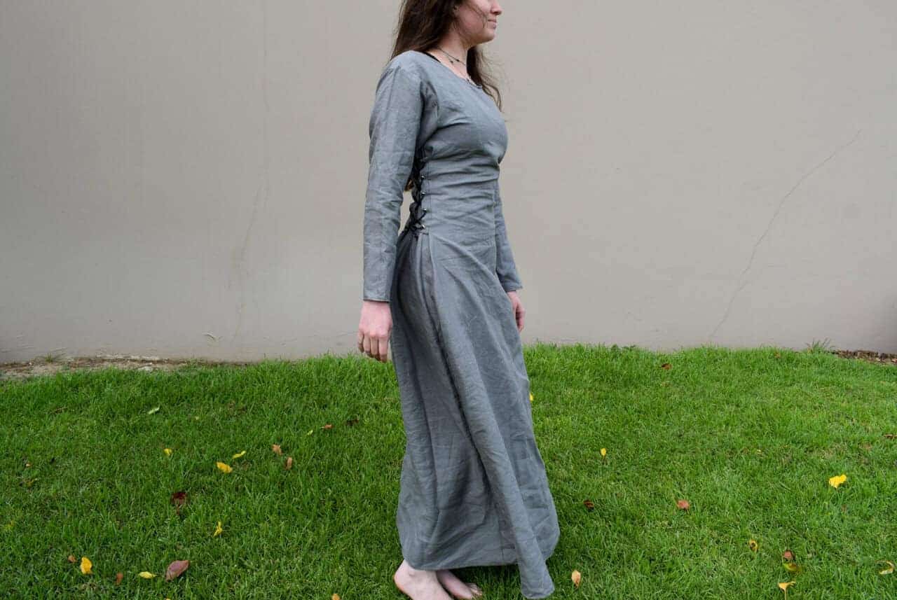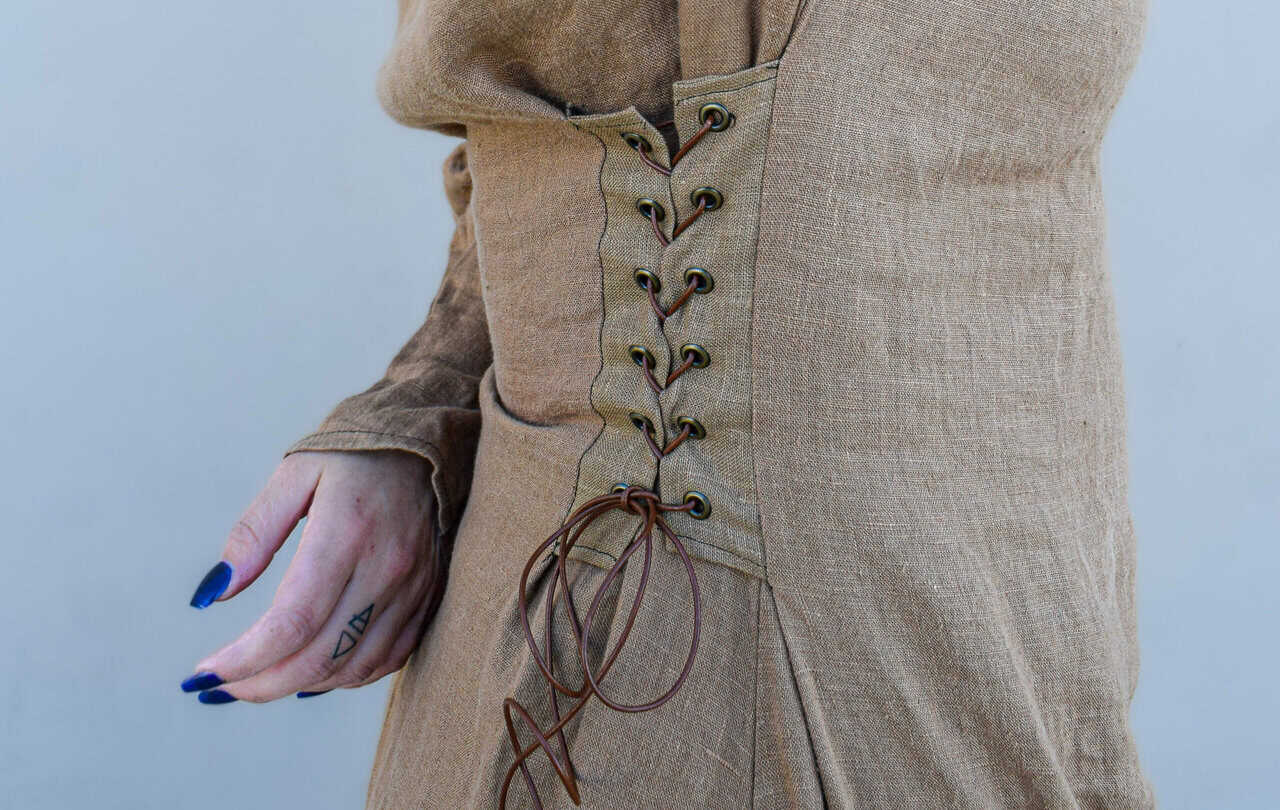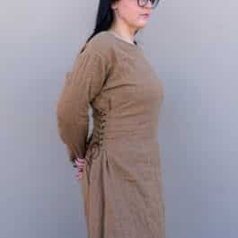 This is a simple viking or medieval style linen long dress, similar to our other medieval dress with adjustment laces on each side to fine tune the fit without a cincher.