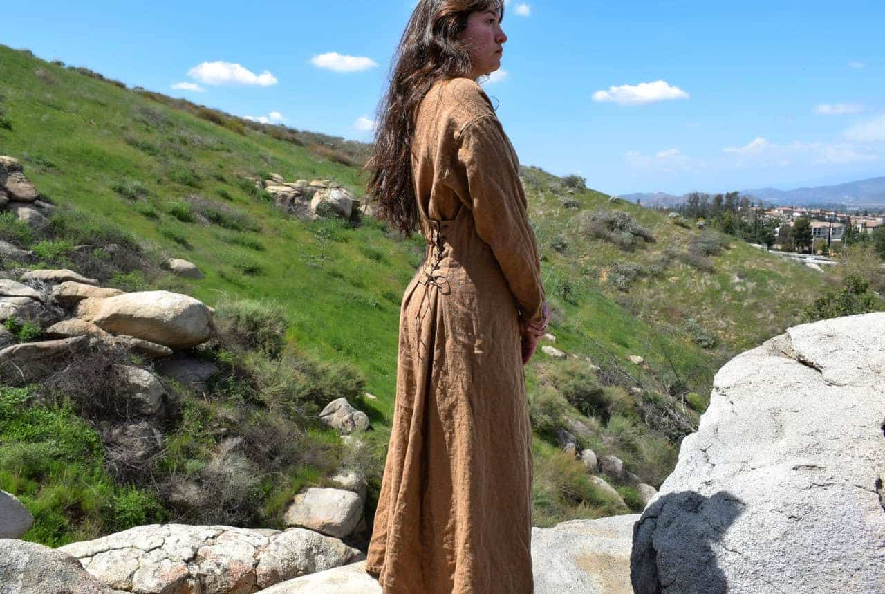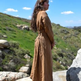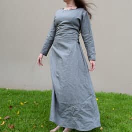 Similar to our linen shirt and long tunic, these chemise style dresses are sized to fit over the bust and be cinched at the waist with a belt, or layered with a bodice, apron, armor, etc.
