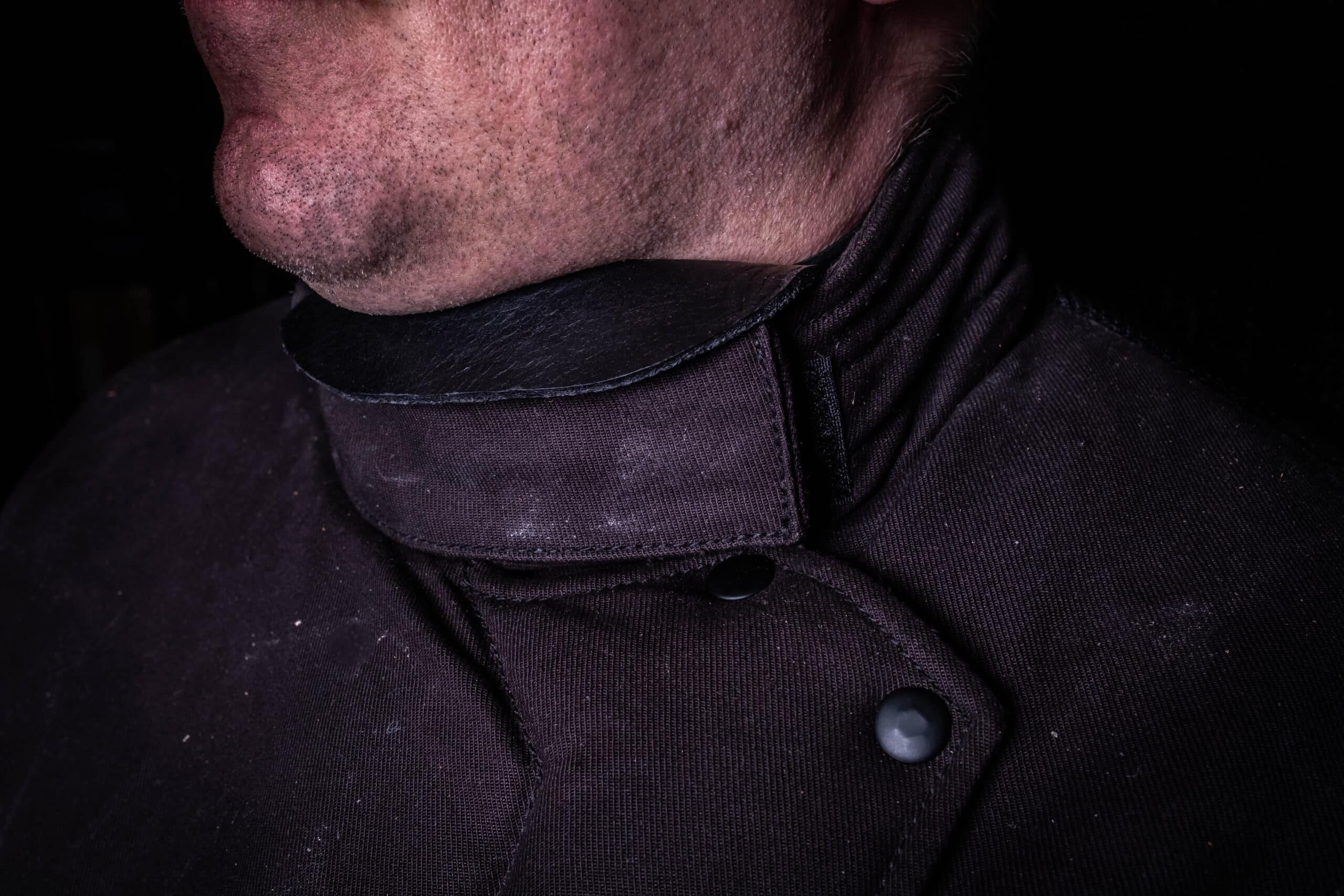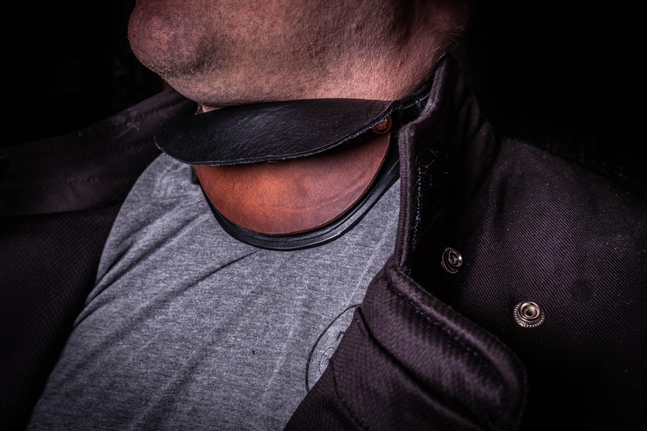 You also have the option of adding a blade-catcher piece that is made out of 4-5 ounce bison leather. The blade-catcher piece is designed to loop over the collar of your jacket to provide another line of defense from stray points.
