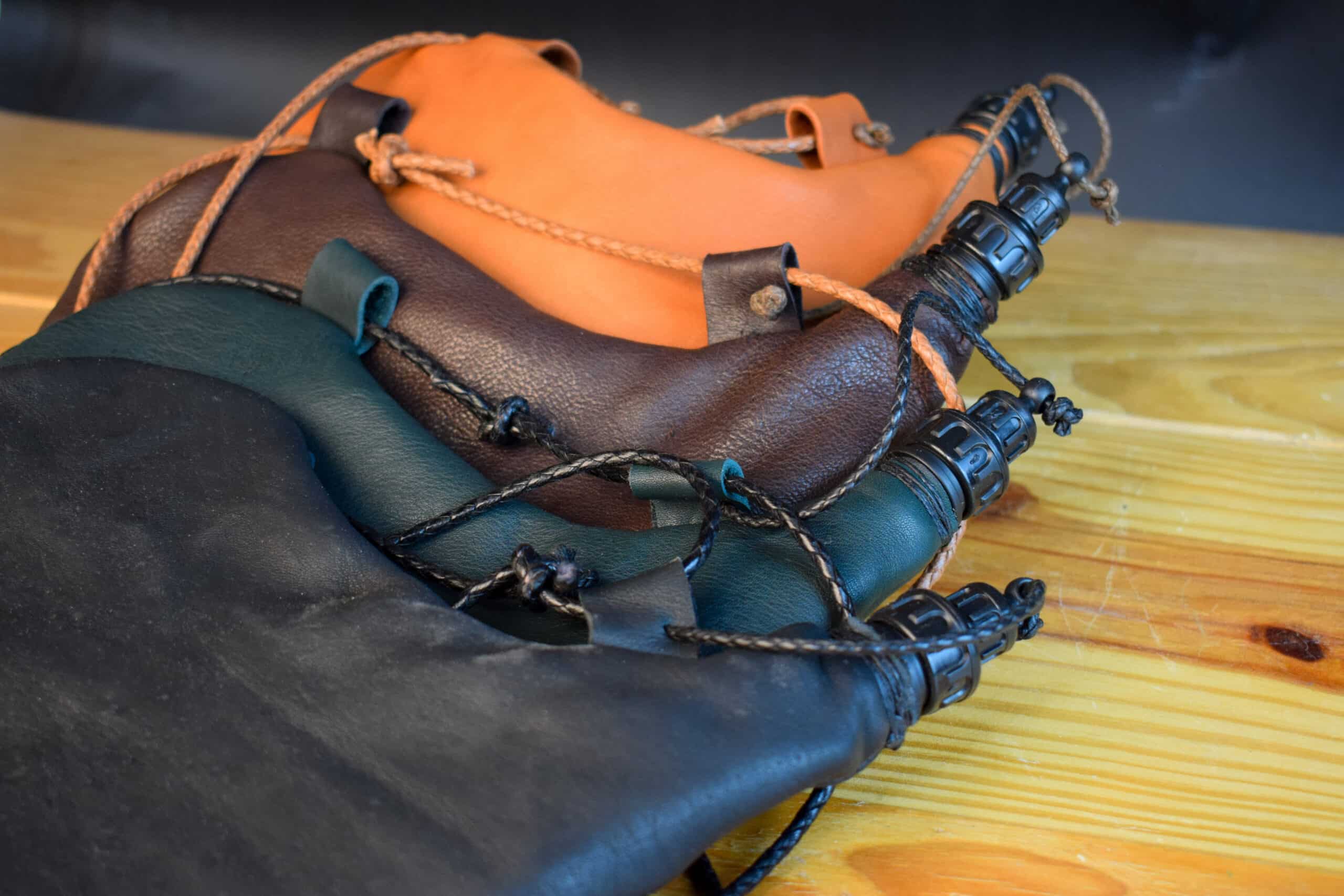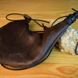 Each wineskin comes with a 60″ length of cord to carry it over your shoulder.