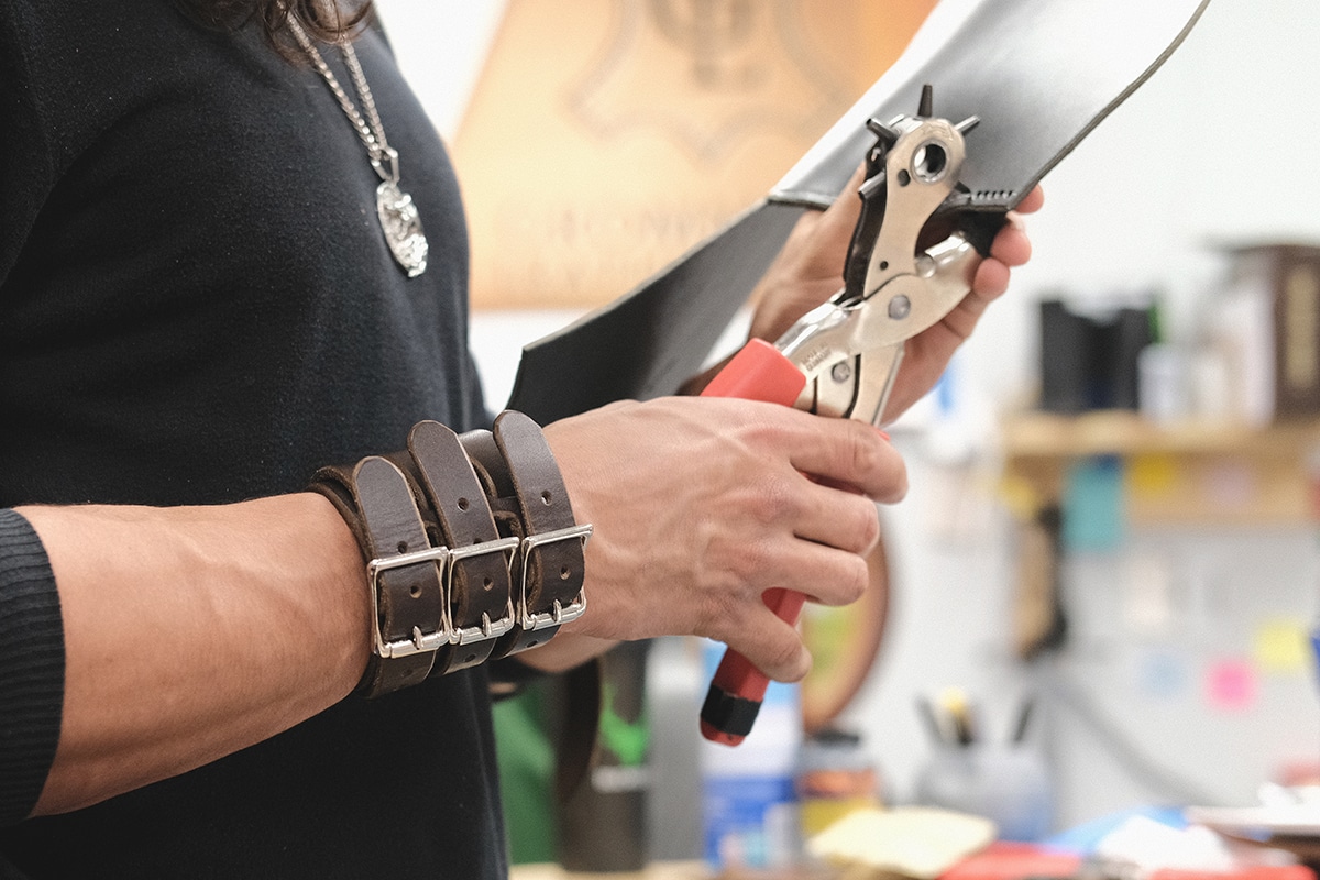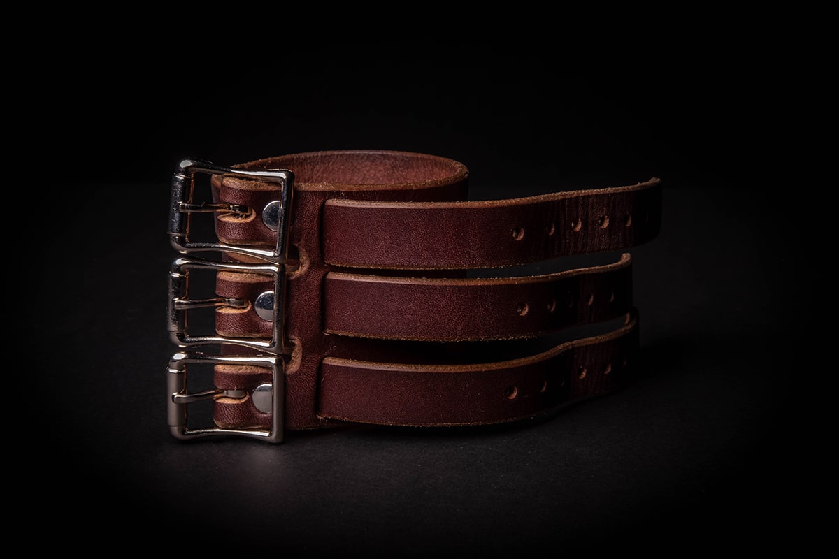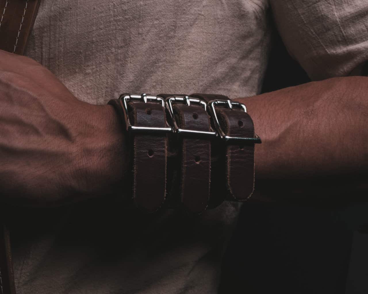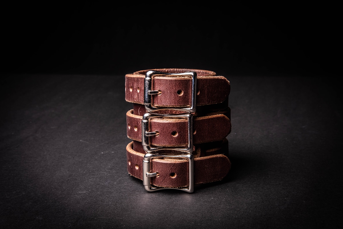 Each cuff is 3″ wide and made out of 8-10 ounce latigo cowhide. Each one has 3 straps that wrap all the way around the cuff and buckle in place, making these a formidable addition to your wardrobe.