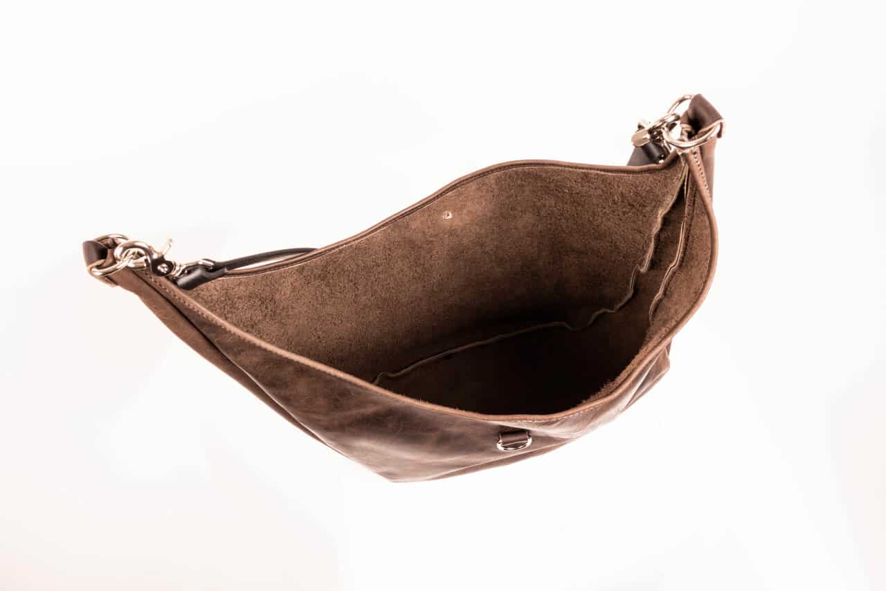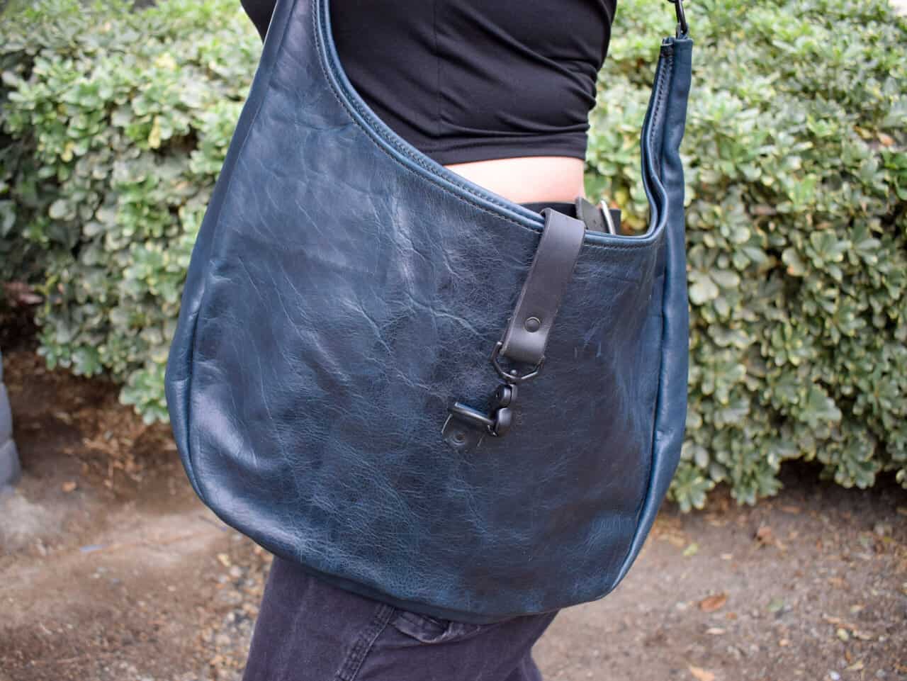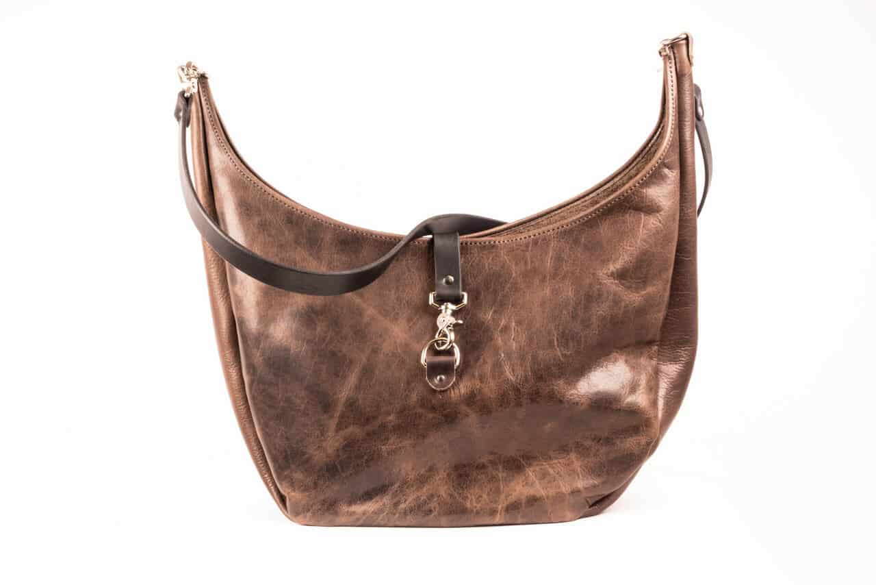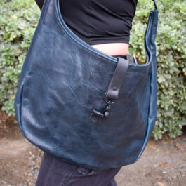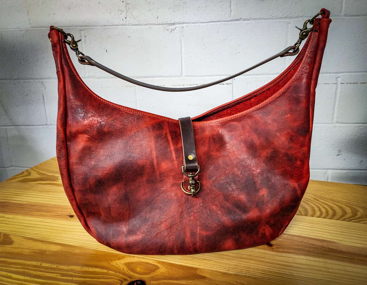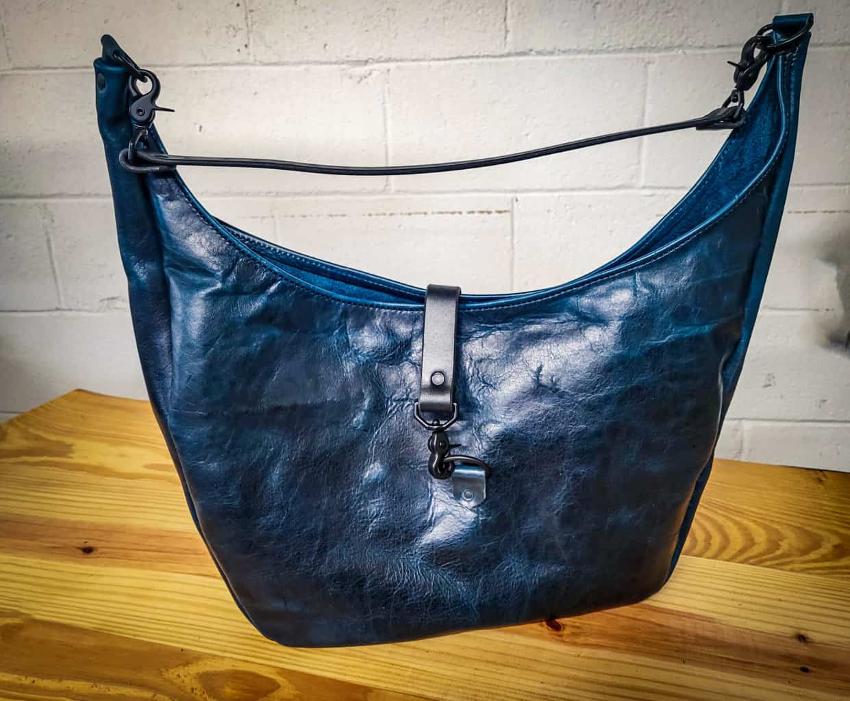 This is a simple crescent shaped bag with a trigger snap closure and your choice of strap length.