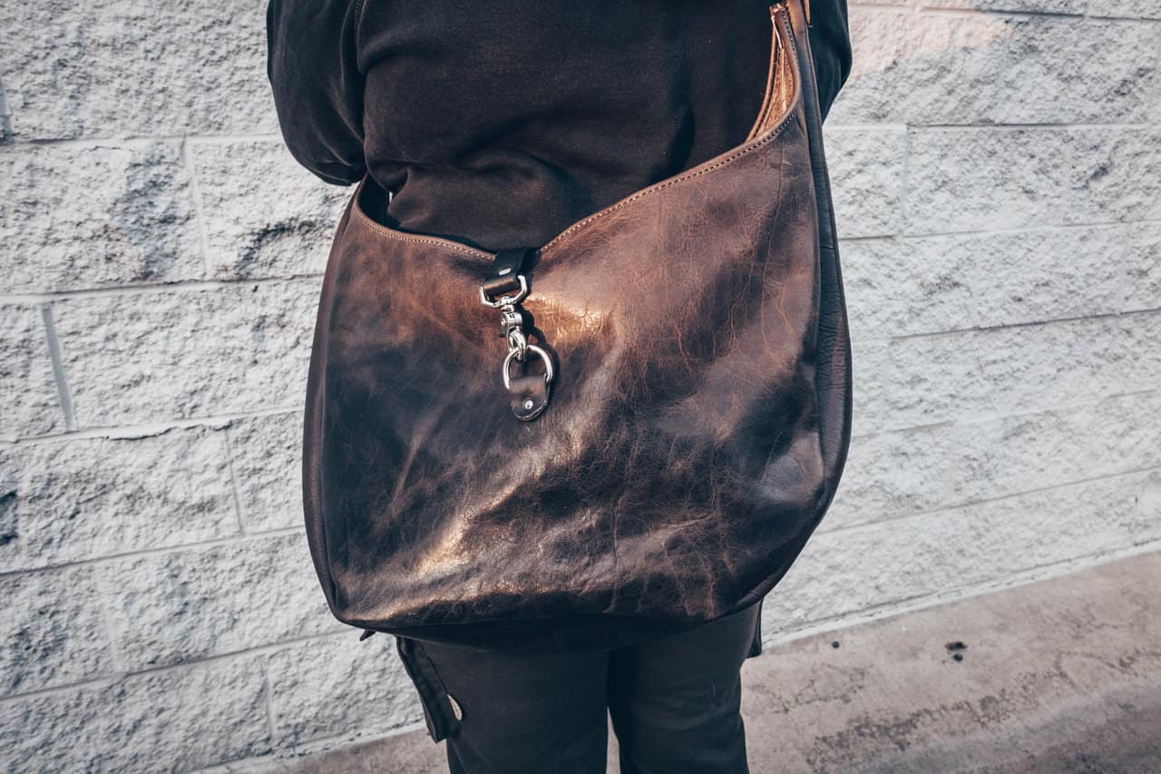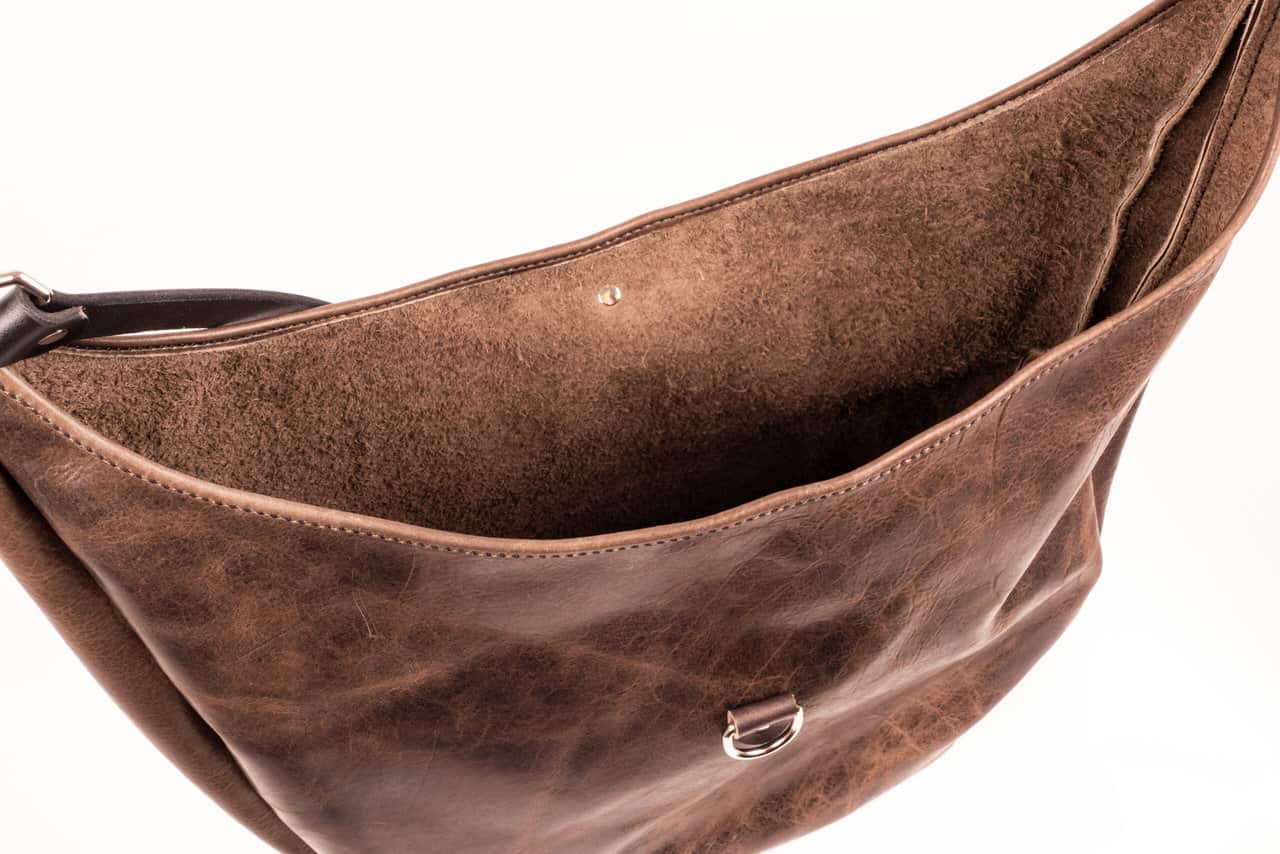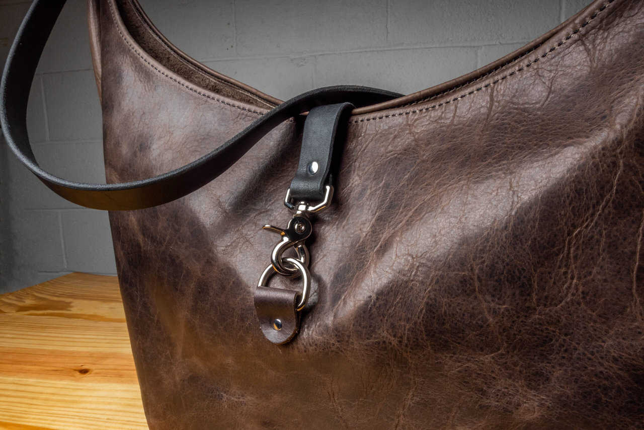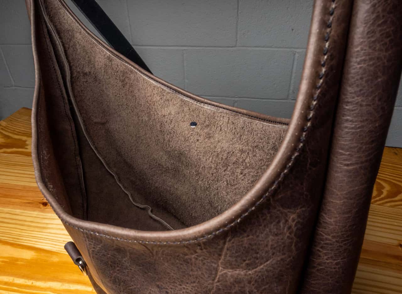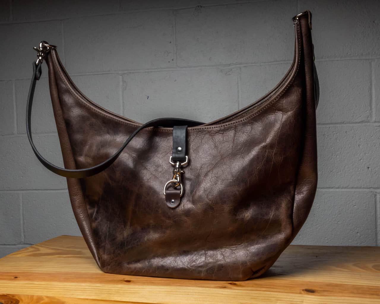Each bag is made out of 4-5 ounce Bison leather with the straps made out of 8-10 ounce latigo cowhide. The bag is closed via a simple strap and clip that attach to a D ring.