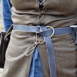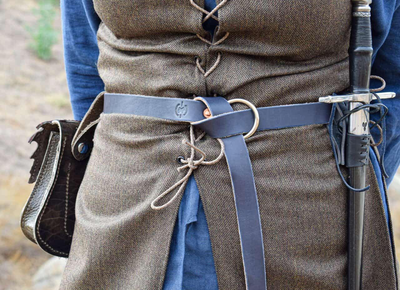 Each belt is 70″ long and made out of 8-10 ounce latigo cowhide with a 1.5″ ring on one end. You have a choice of steel, brass, black, or antiqued brass for the ting finish.