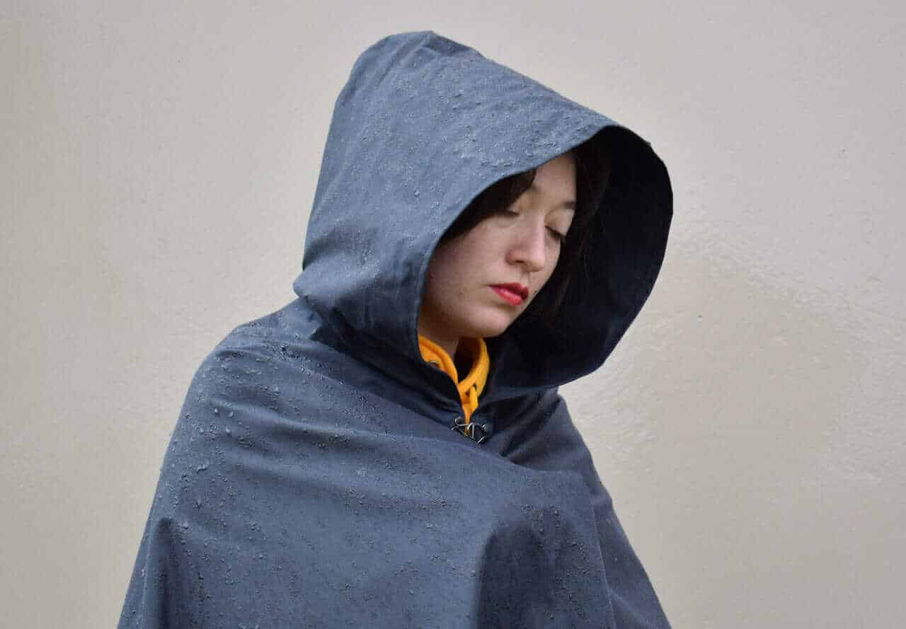 The waxed canvas is slightly heavier than our linen cloak, and not quite as “flowy” but has the added benefit of being water resistant.