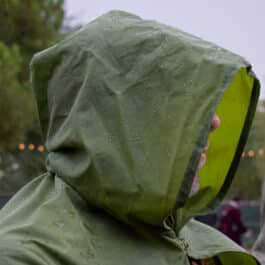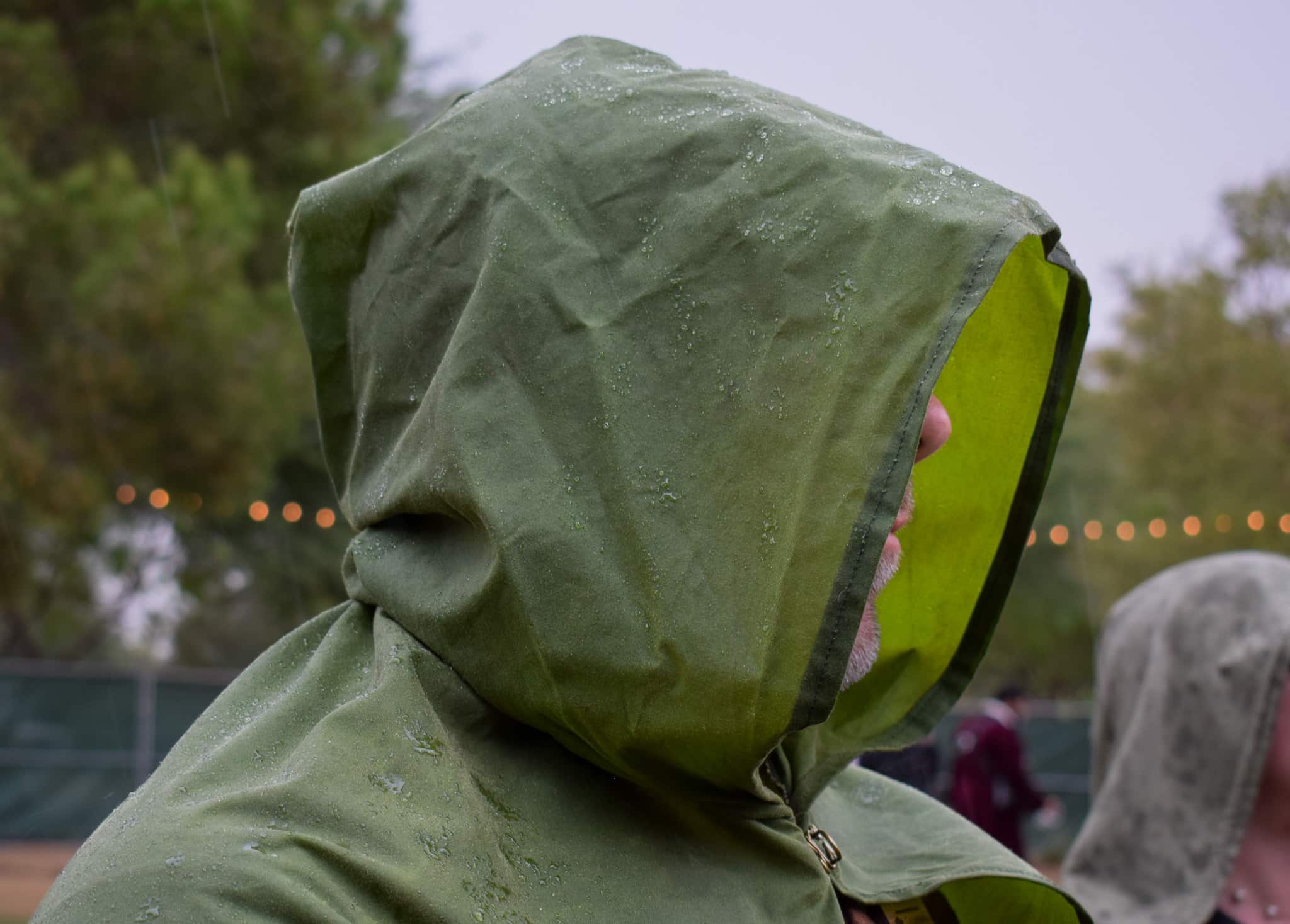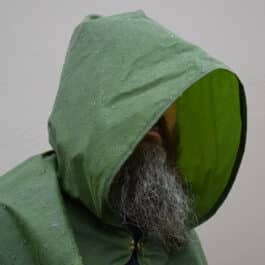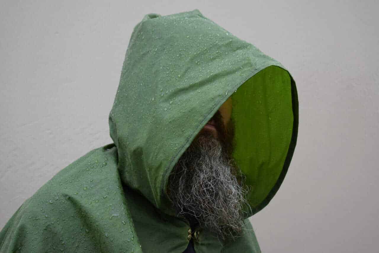 These are simple hooded cloaks made out of a lightweight waxed cotton duck canvas.