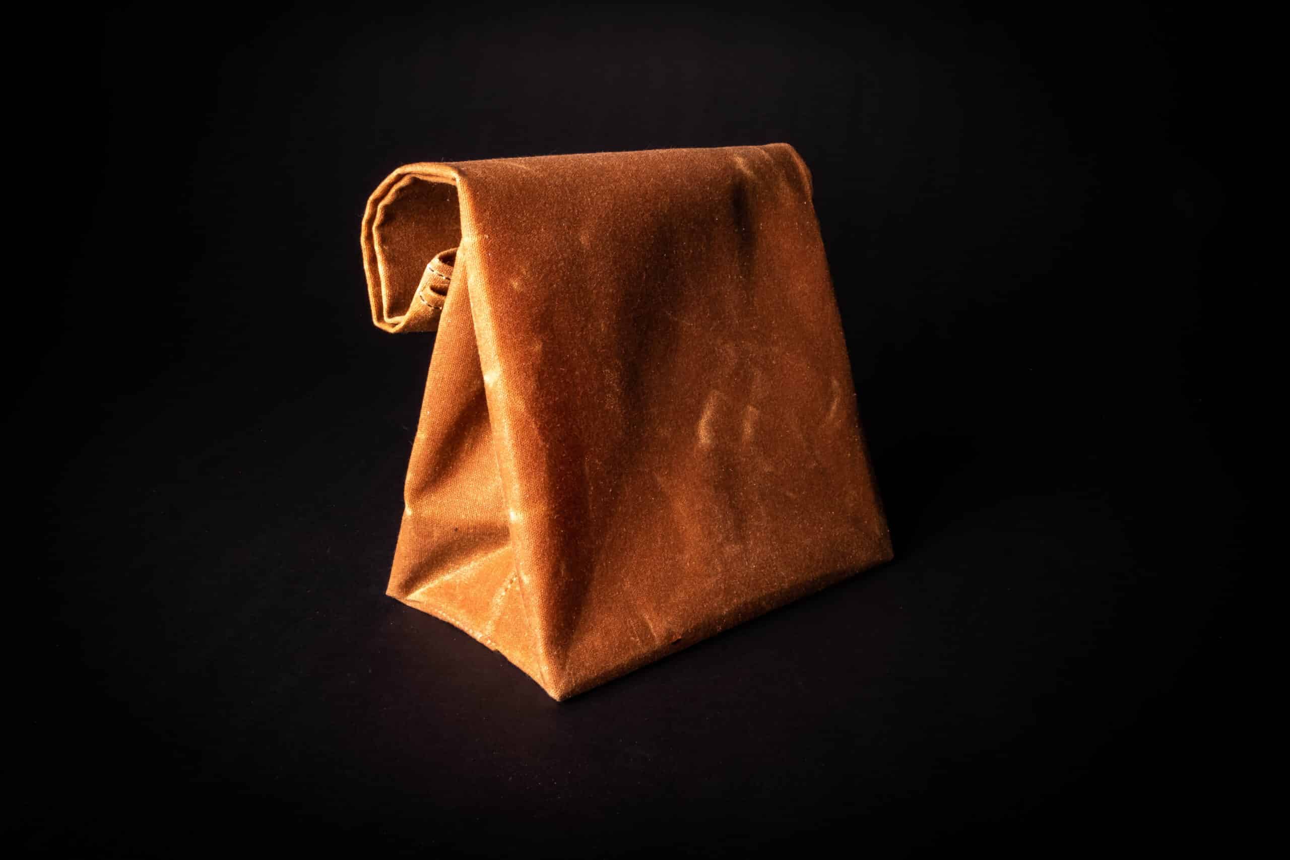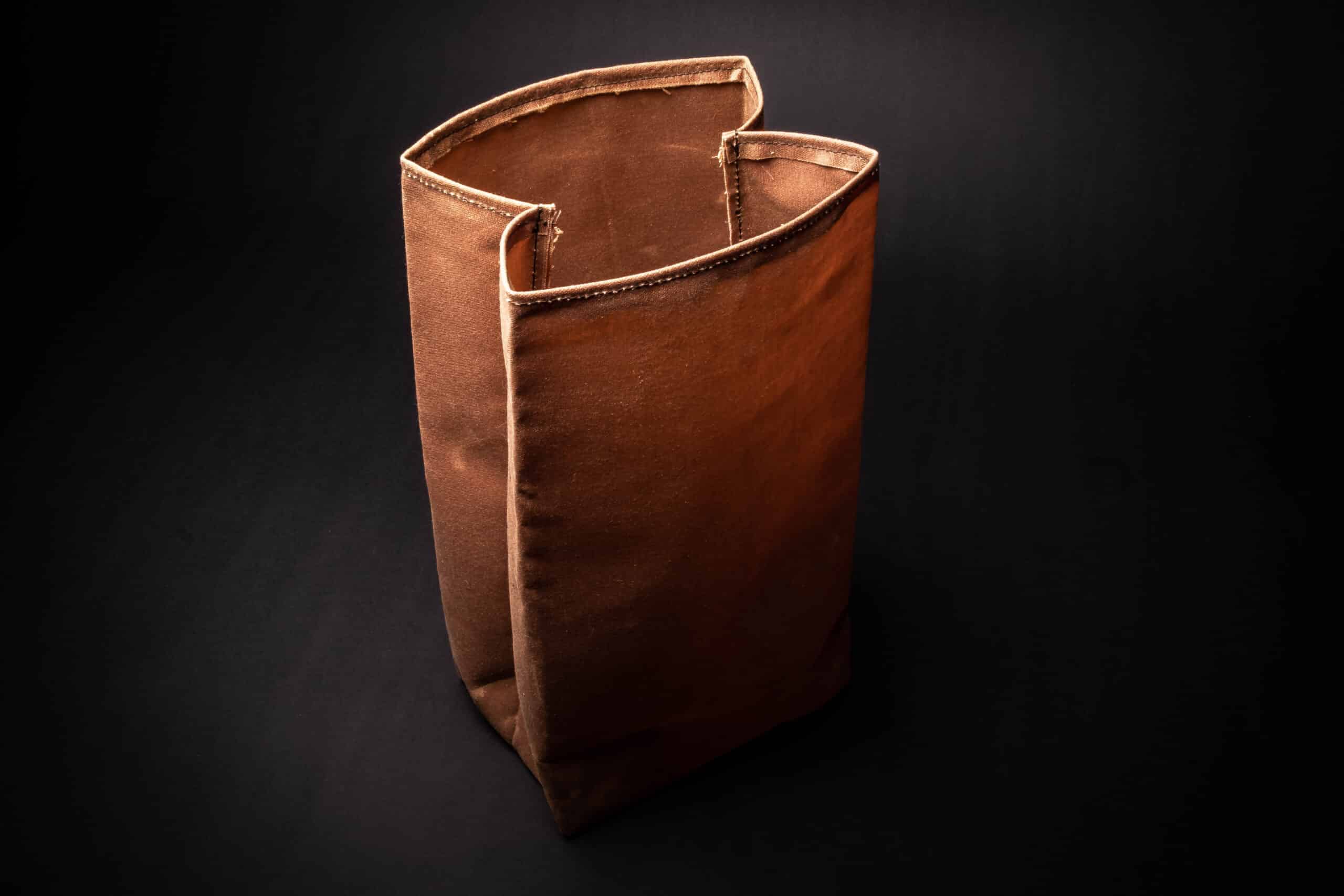 This is a brown paper bag style pouch made out of durable and water resistant waxed cotton canvas.
