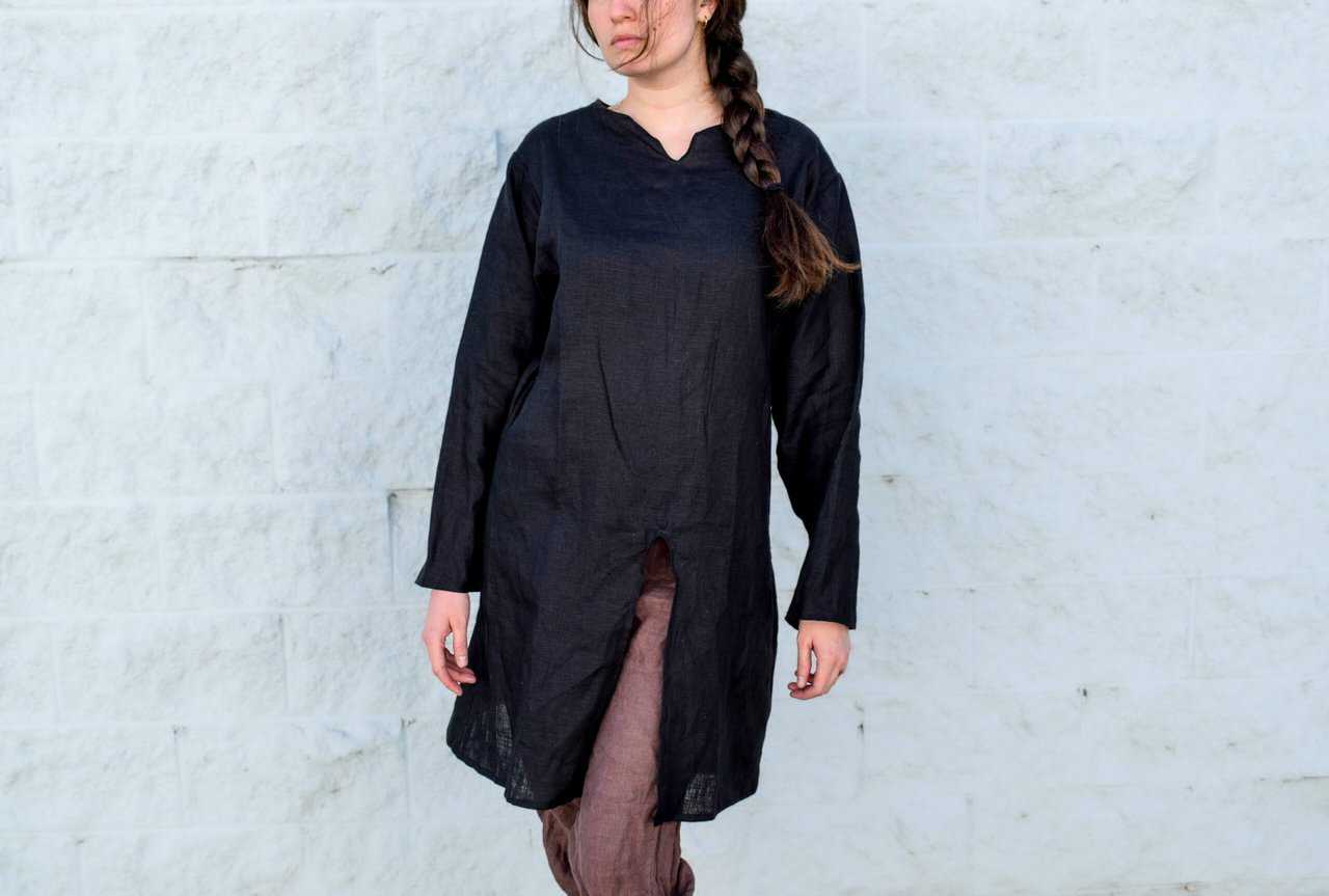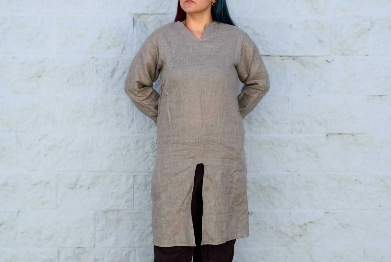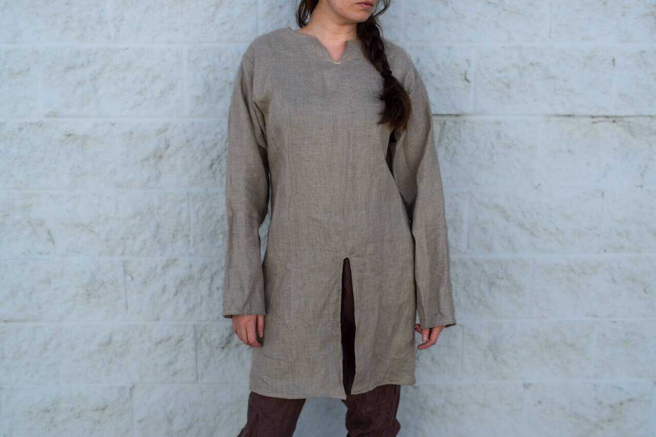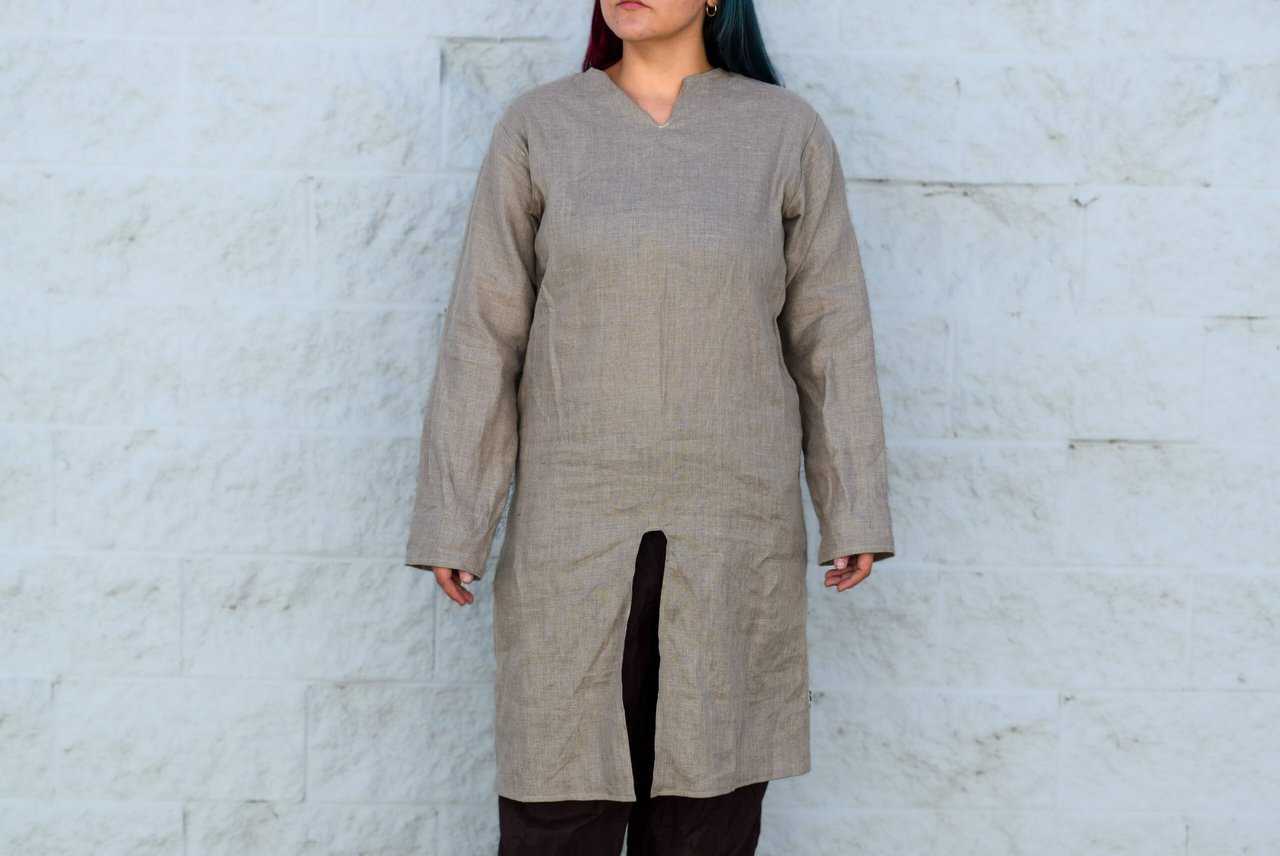 This is a simple viking style linen long shirt/tunic. Similar to our standard long tunic, but tailored a bit more to the female form.