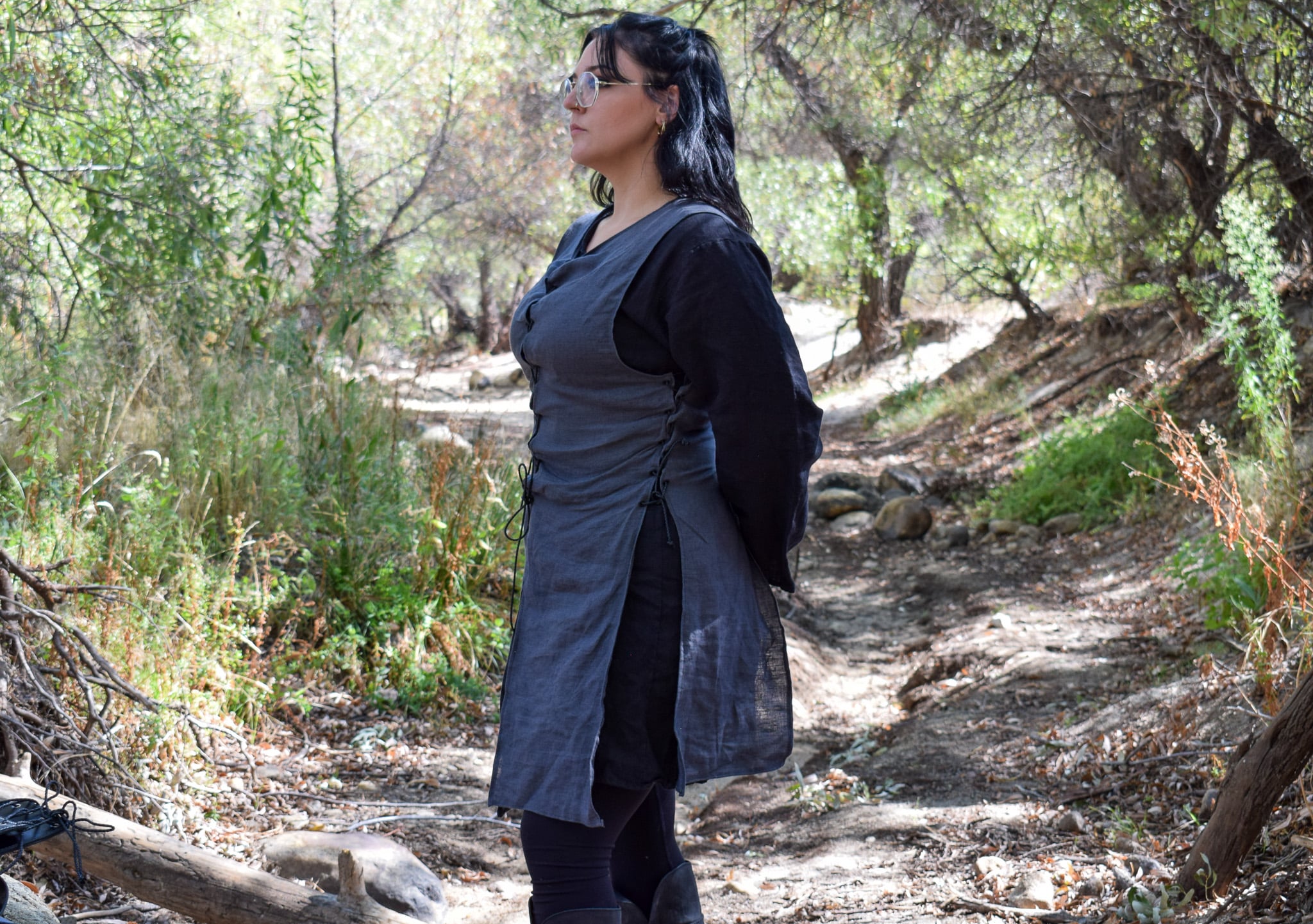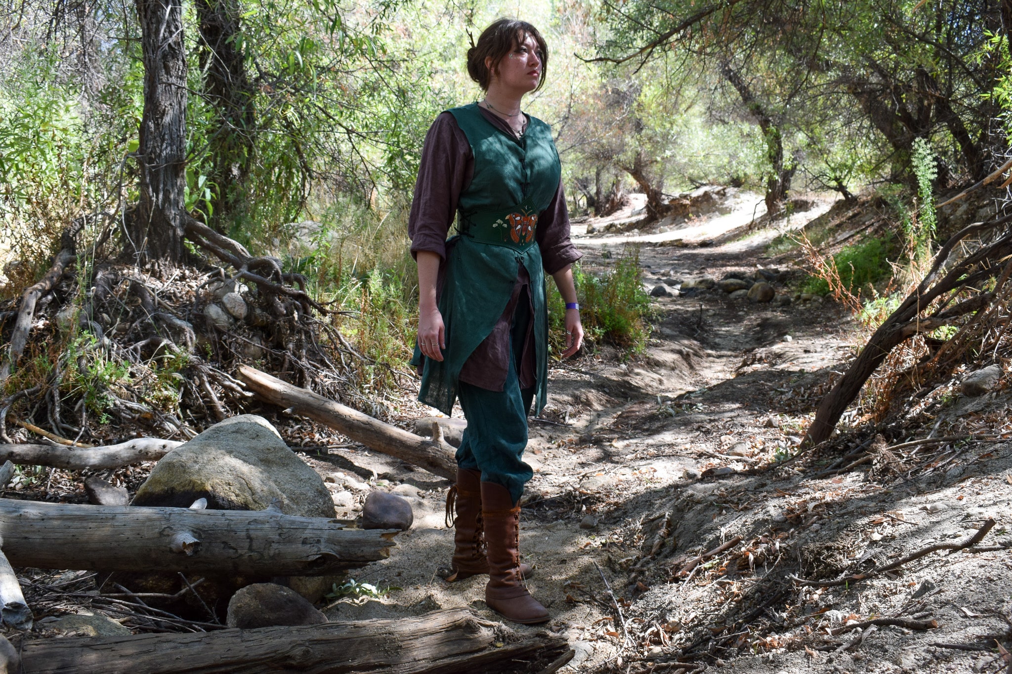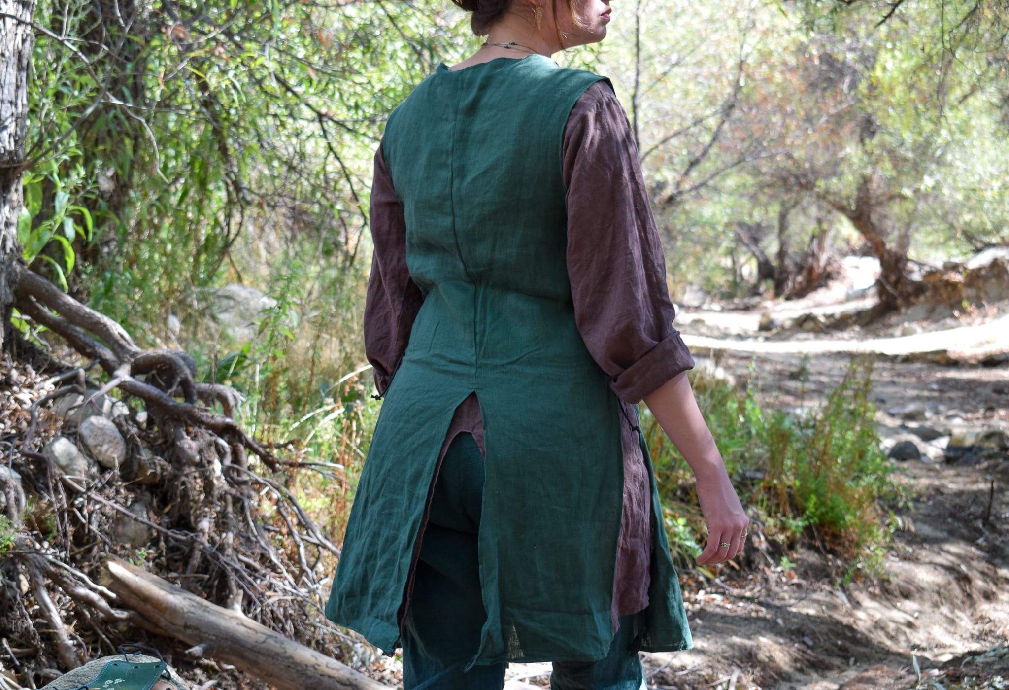 This is a jerkin/ jacket made out of the same medium weight linen that we use for our linen cloaks. Similar to our standard ranger jerkin, but tailored a bit more around the hips, chest, and arms.