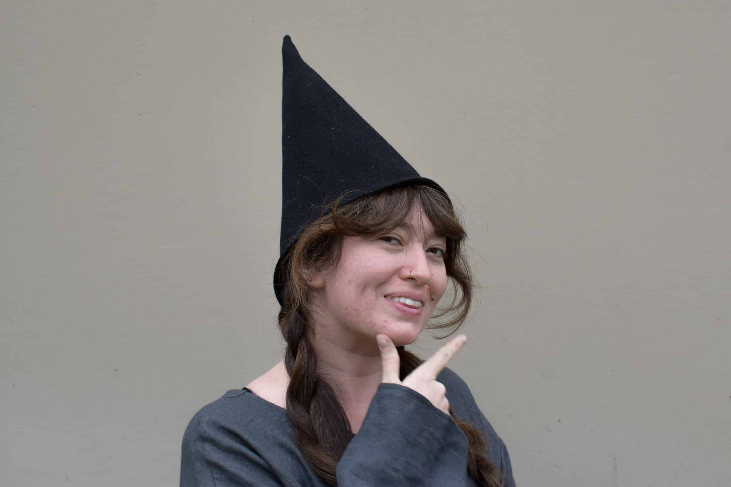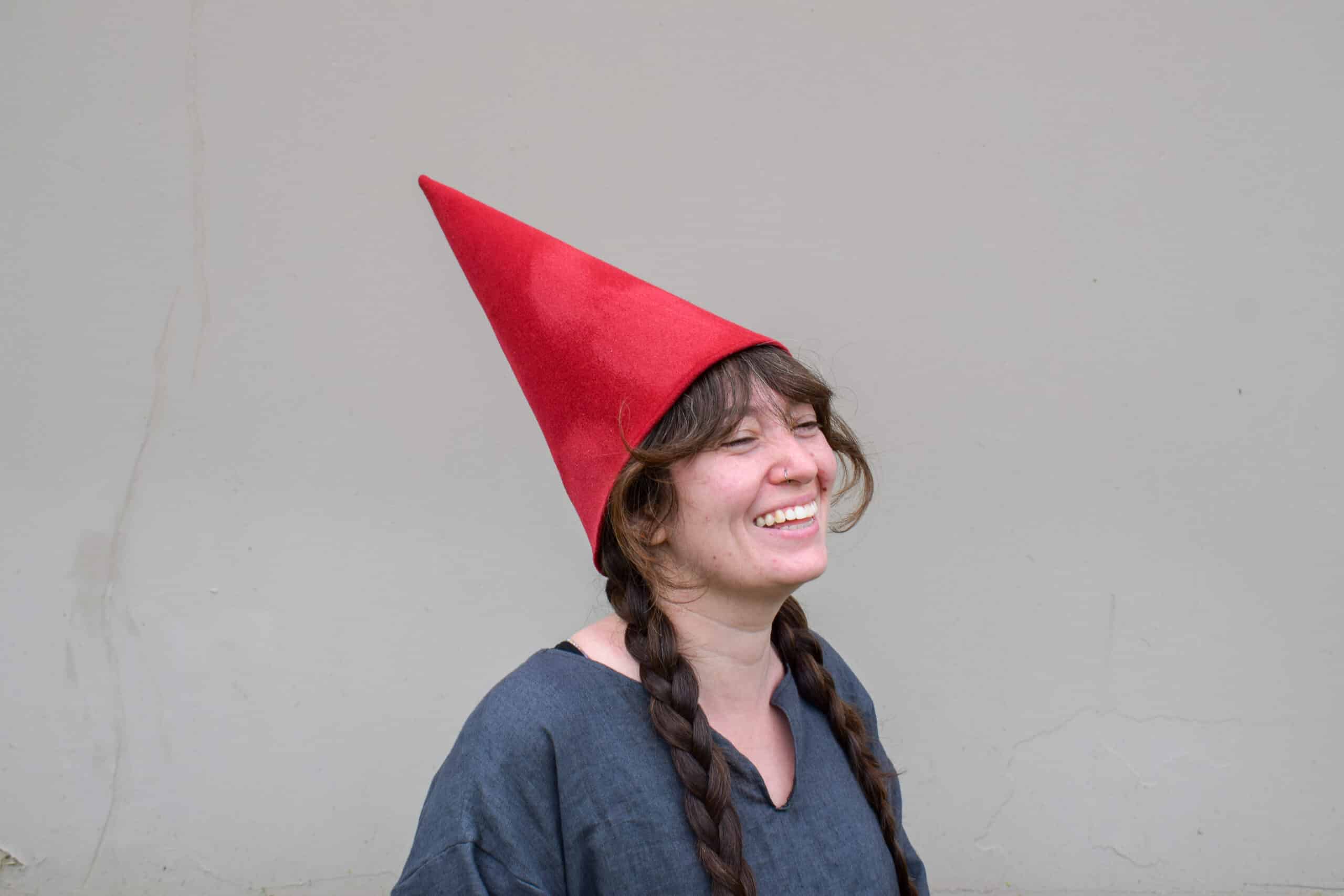 Historically these types of hats were called “hennin” and were worn by noblewomen, often with veils attached. Mythically and perhaps more commonly they are knows as the hats worn by gnomes, though some gnomes are known to wear the similar, but more ancient Phrygian cap.
