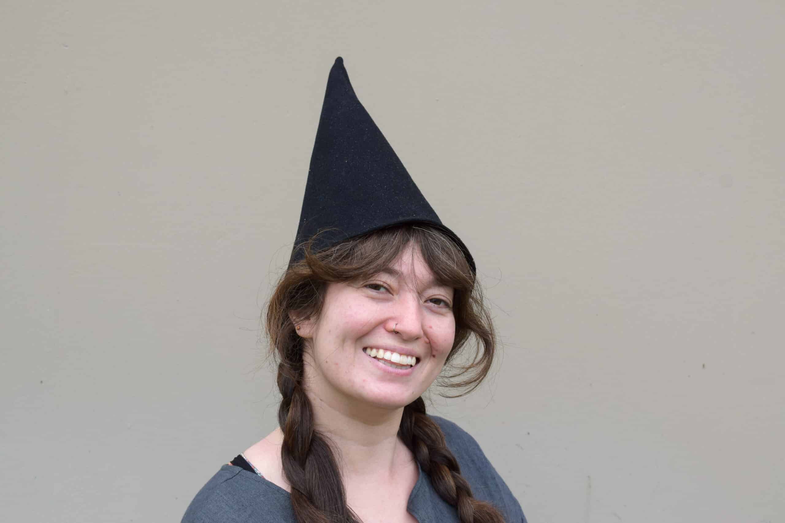 These are a simple cone shaped medieval hat made out of a medium weight wool blend.