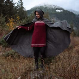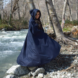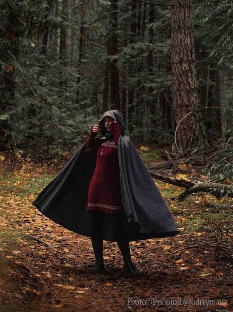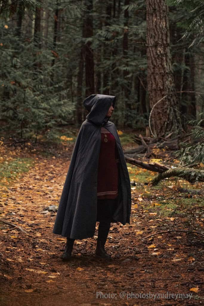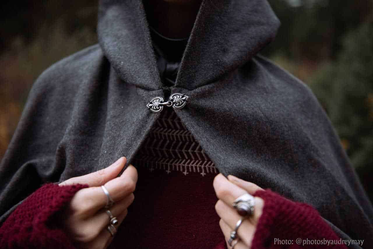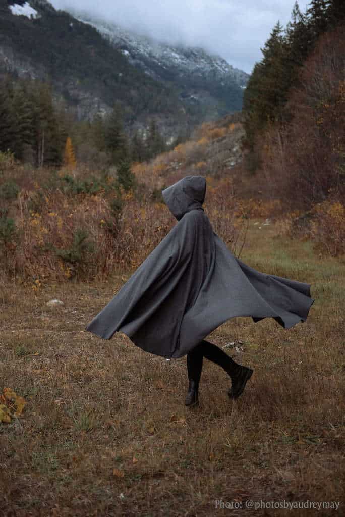Each cloak is a half circle, with a full hood and your choice of closure.