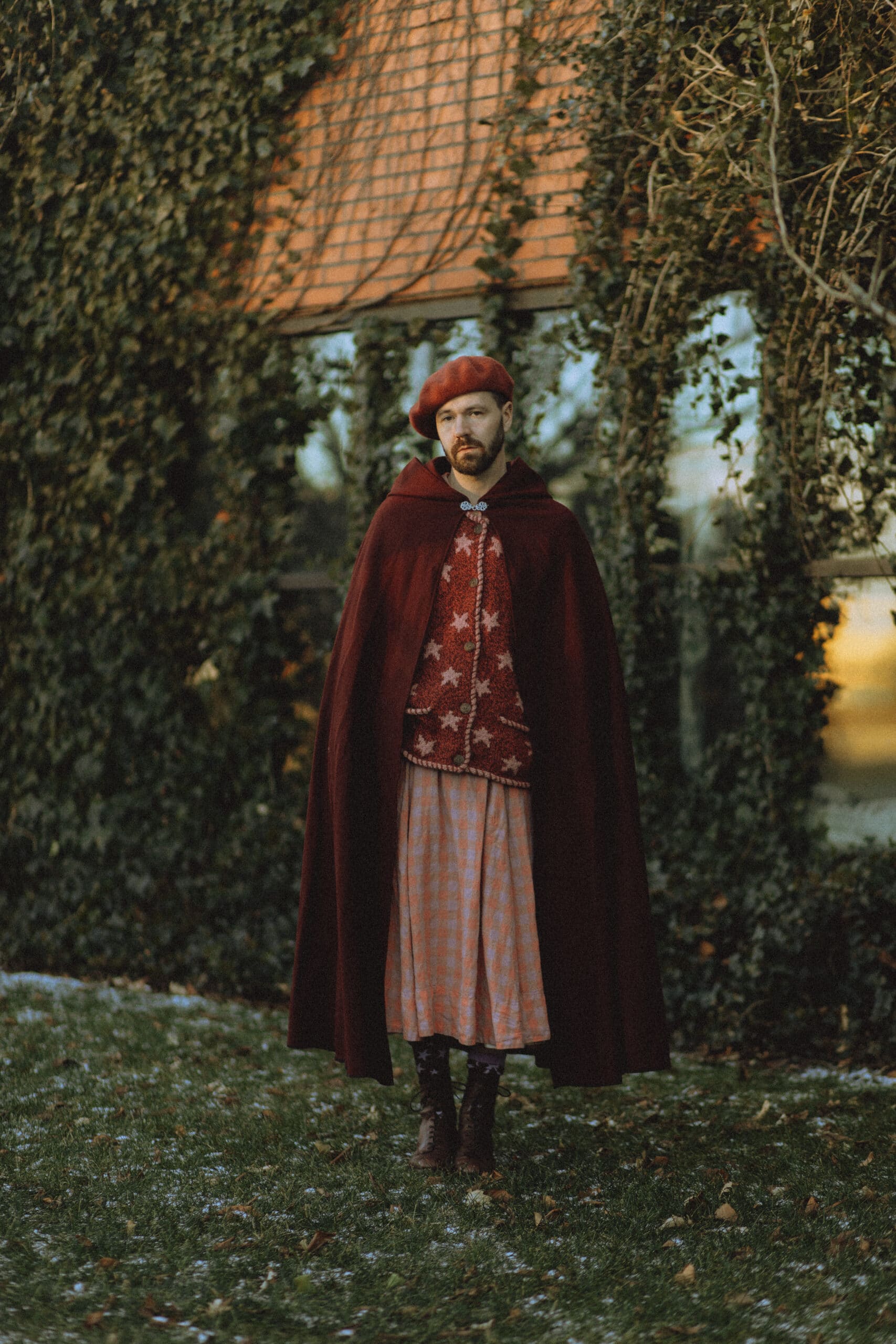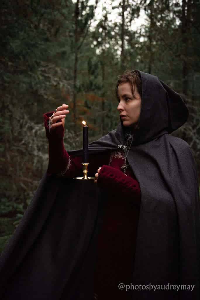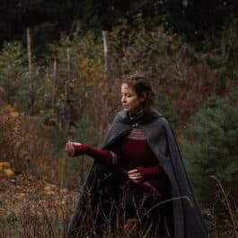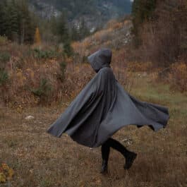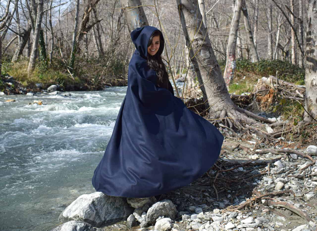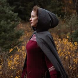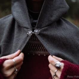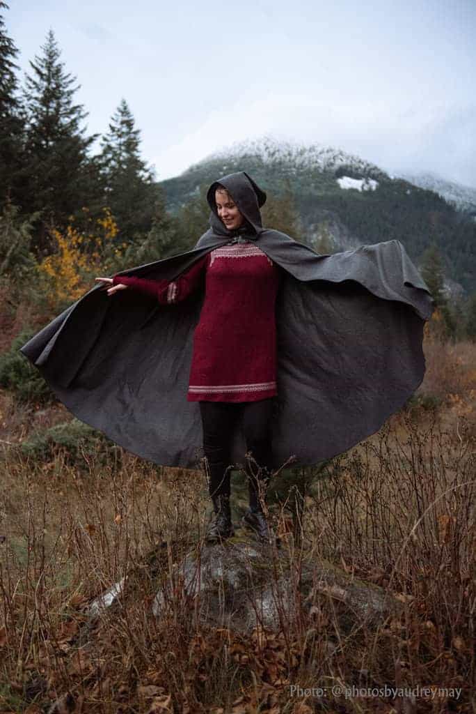 Each cloak is a half circle, with a full hood and your choice of closure.