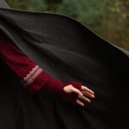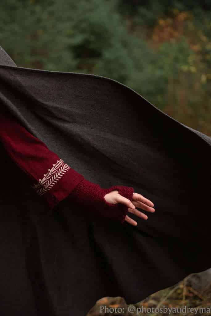 The bottoms of these cloaks are unhemmed, but serged. This helps the cloak drape and flow better than if they were fully hemmed along the bottom. We can always hem the bottom of your cloak, so feel free to let us know in the order notes if you’d like yours hemmed and we will hem it for no extra charge.