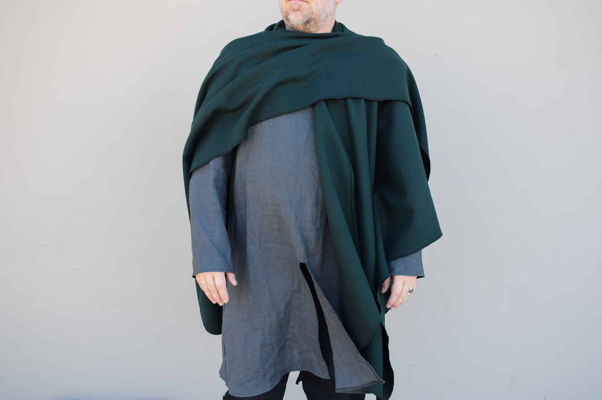 This a simple ruana cloak that can be worn a number of different ways.