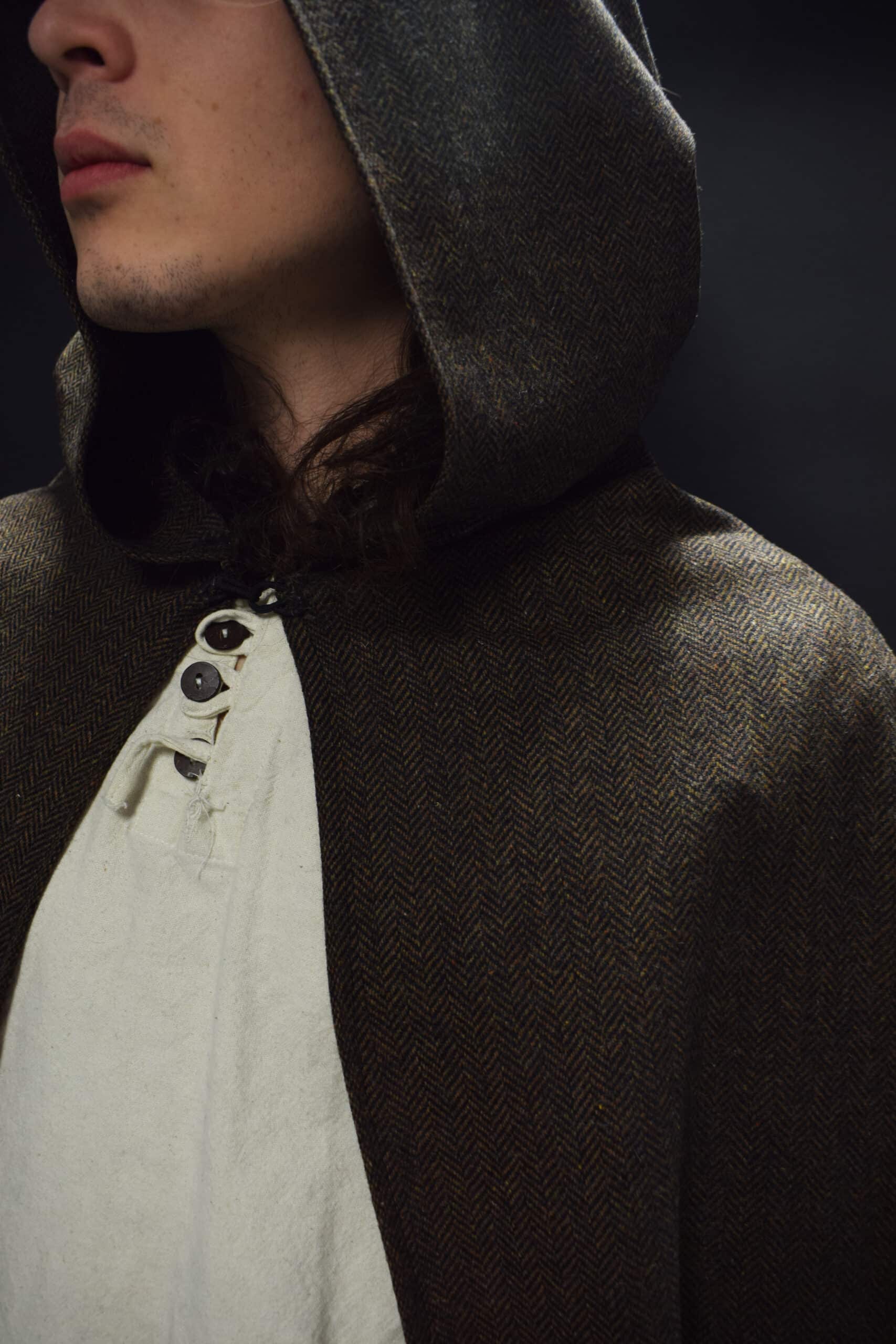 One of our most high end cloaks, these are made out of 100% wool tweed, in a number of colors and patterns, including some variations of Donegal tweed from Ireland.