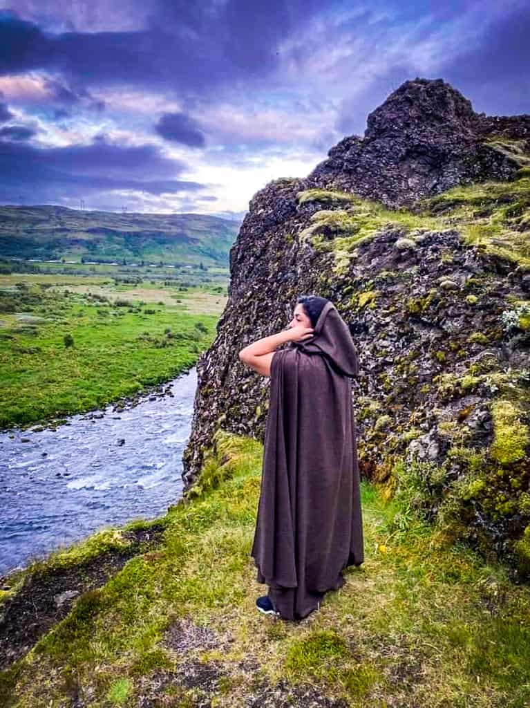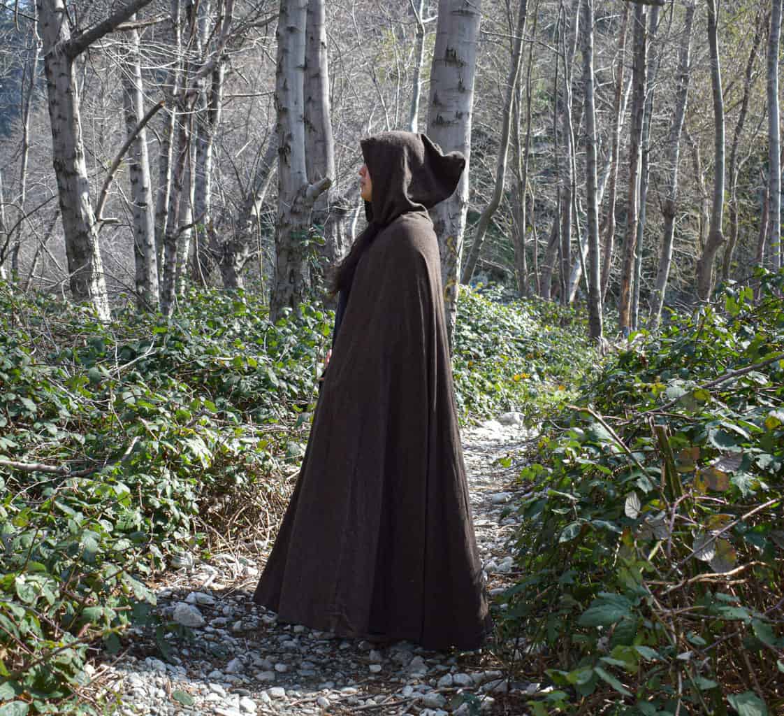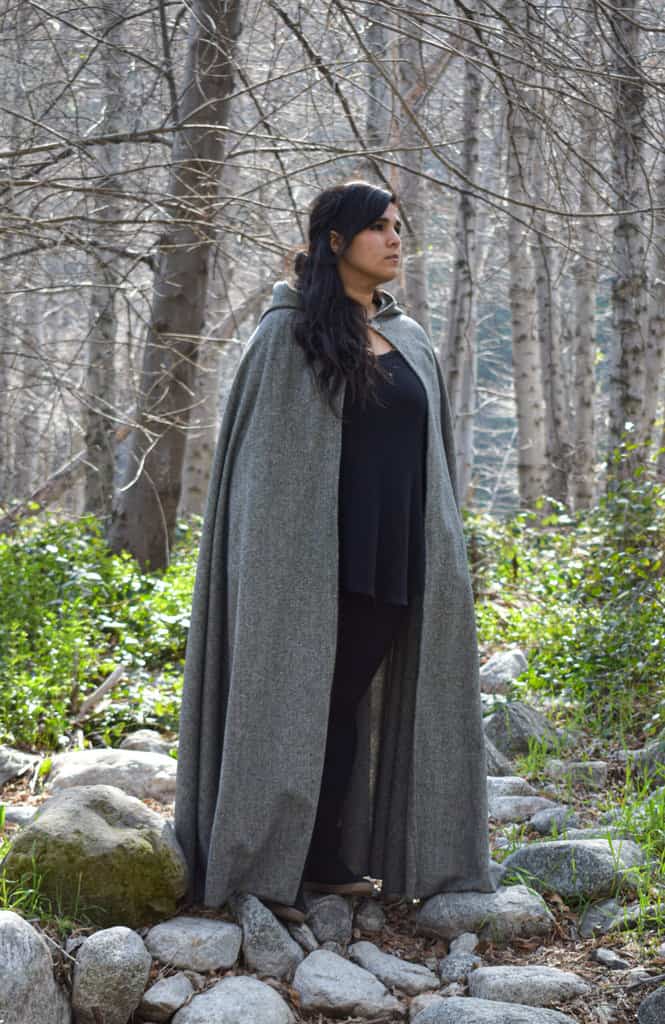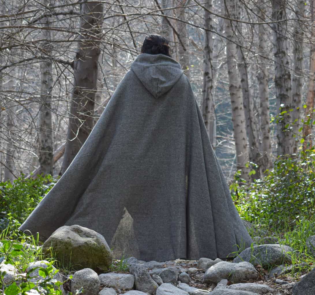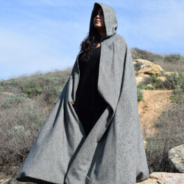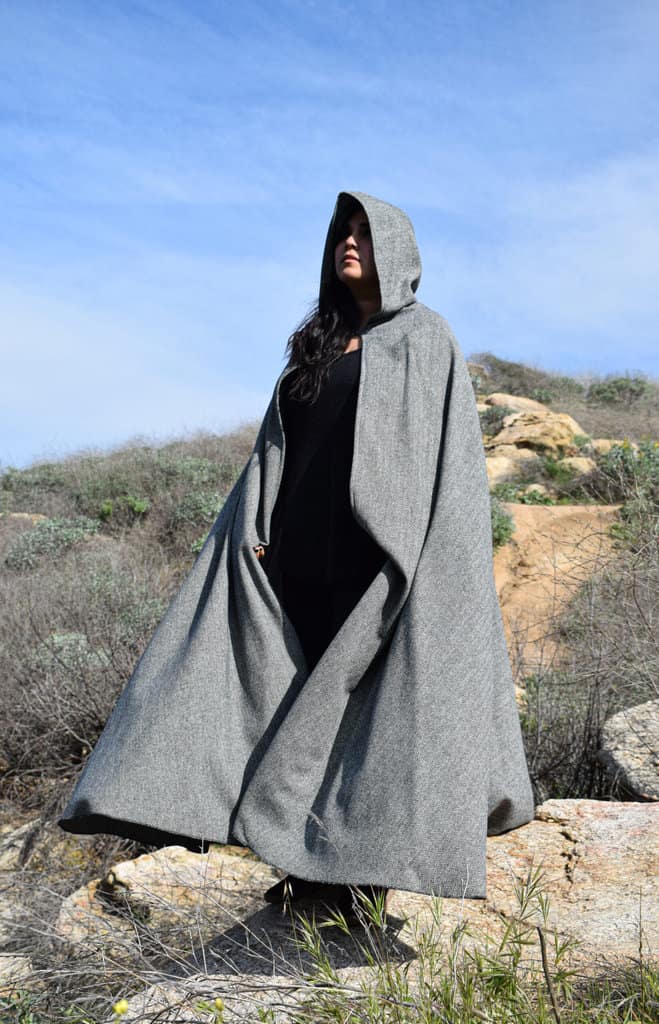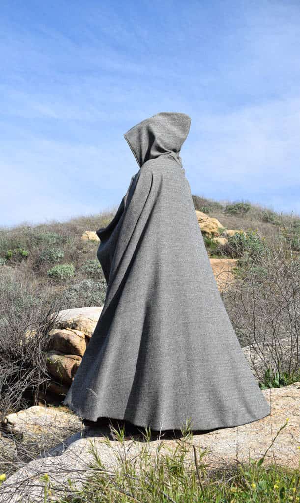 Each cloak is a half circle, with a full hood and your choice of closure.