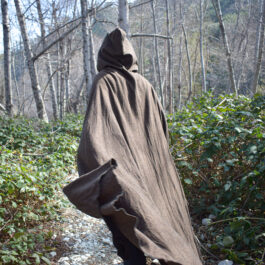 The bottoms of these cloaks are unhemmed, but serged. This helps the cloak drape and flow better than if they were fully hemmed along the bottom. We can always hem the bottom of your cloak, so feel free to let us know in the order notes if you’d like yours hemmed and we will hem it for no extra charge.